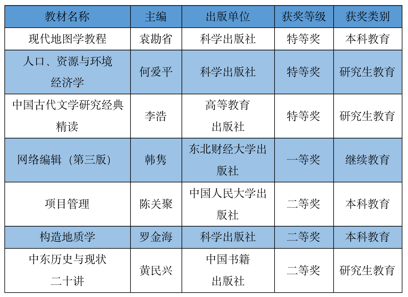 近日,陕西省2022年高等教育优秀教材奖评选结果公布,beat365官网共有7部教材获奖,其中《现代地图学教程》《人口、资源与环境经济学》《中国古代文学研究经典精读》3部教材荣获特等奖,《网络编辑(第三版)》荣获一等奖,《项目管理》《构造地质学》《中东历史与现状二十讲》荣获二等奖。