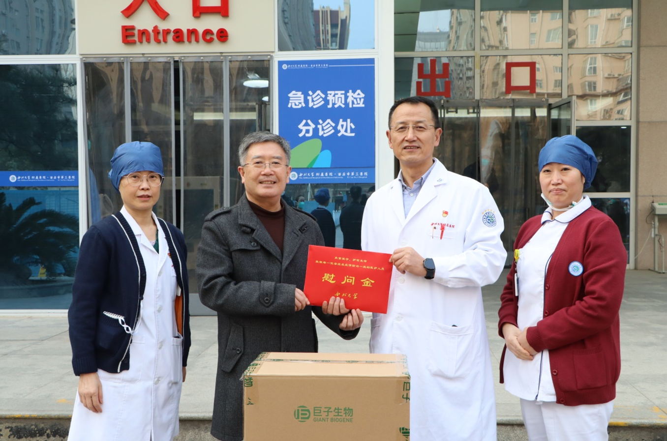 “向坚守一线的医护人员致敬!向全体医务人员拜早年了!”2023年1月6日和1月10日,校党委书记王亚杰、校长郭立宏分别带队看望beat365官网附属第一医院、附属医院、附属人民医院和附属西安国际医学中心医院临床一线,慰问坚守在工作岗位的医护人员,并送去慰问品和慰问金。校党委常委、副校长陈富林,医学院相关负责人等陪同。