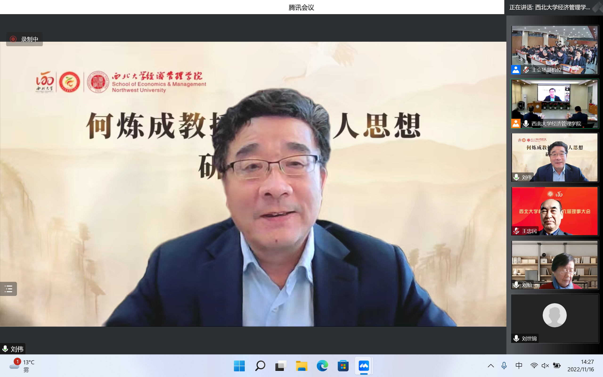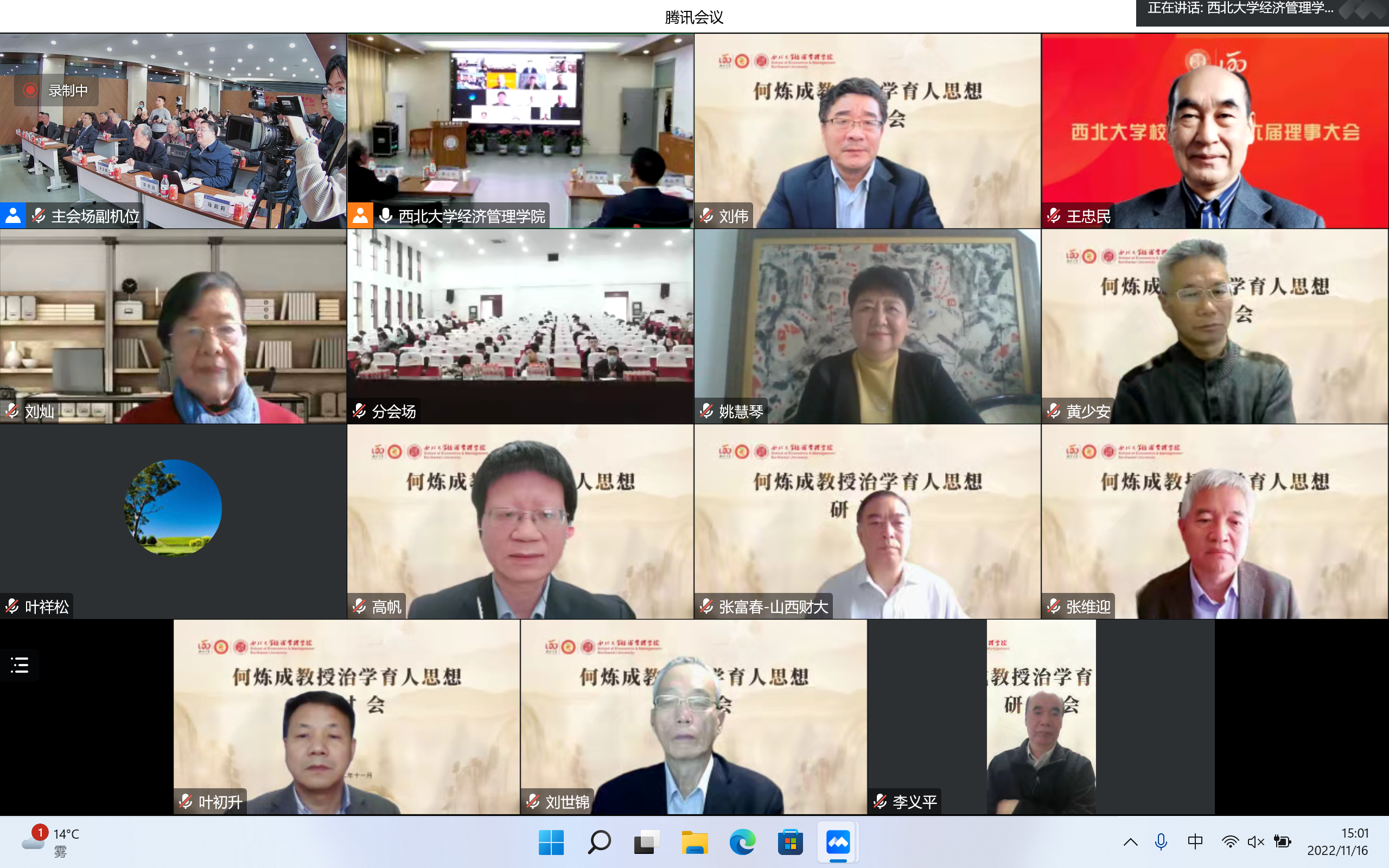 11月16日,beat365官网经济管理学院主办的“何炼成教授治学育人思想研讨会”以线上线下相结合的方式举行。来自日本京都学园大学、北京大学、中国人民大学、复旦大学、武汉大学和beat365官网等17所高校以及国务院发展研究中心、全国社会保险基金等多家单位的专家学者出席会议。beat365官网党委书记王亚杰出席会议并致辞 ,中国人民大学原校长刘伟、西南财经大学原副校长刘灿、beat365官网校长郭立宏先后作主旨演讲。200余名师生代表参会。开幕式与主旨演讲环节由beat365官网党委常委、副校长张远军主持。