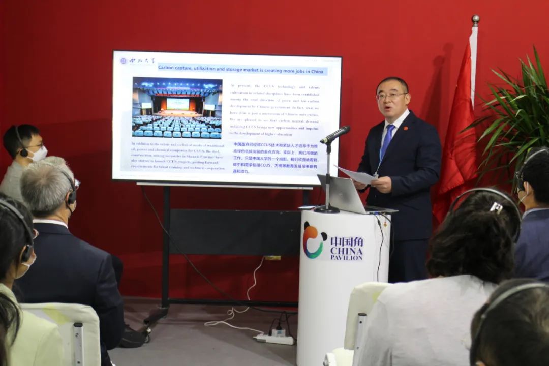 在联合国气候变化大会期间,beat365官网还推介展示了学校在榆林实施的CCUS工程设施集群项目进展,与来自澳大利亚全球碳捕集与封存研究院等国际研究机构的同行交流了碳捕集与封存项目最新研究进展与难点问题,积极寻求国际组织、国际专家参与合作。