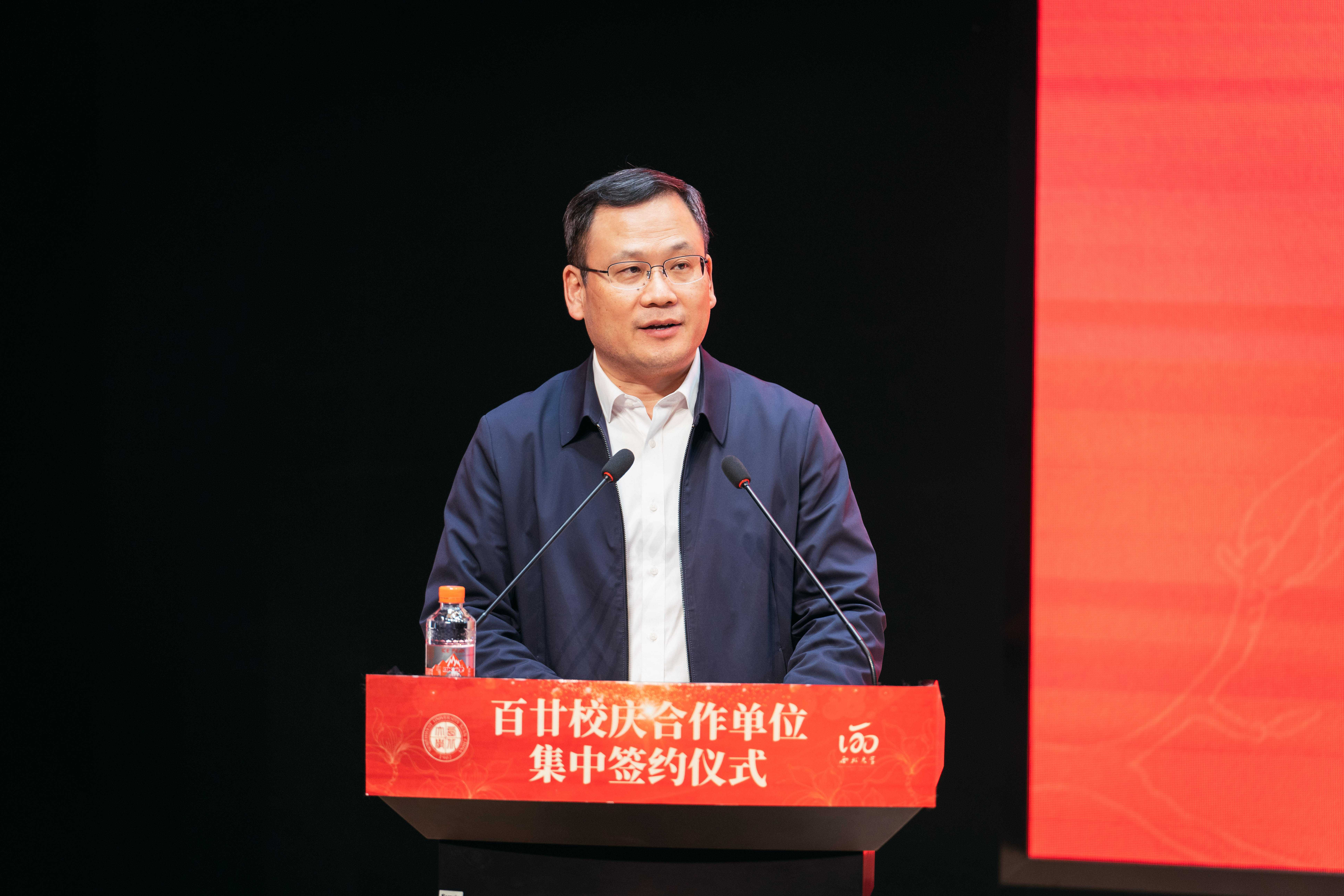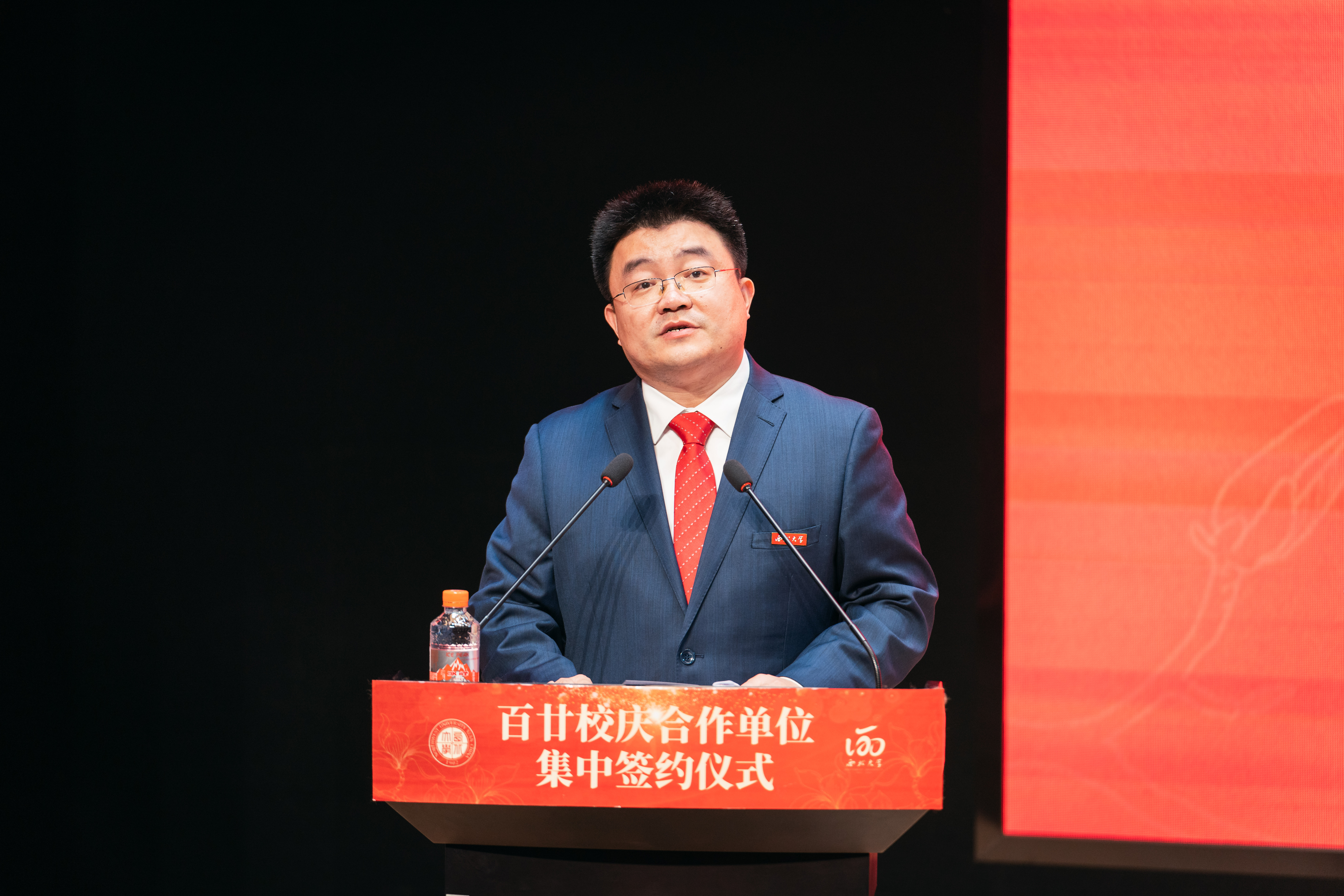 王亚杰在致辞中表示,近年来,学校始终坚持“开放办学、合作共赢”的发展战略,不断深化与社会各界的合作,经验表明,合作是助力西大人才培养的重要推手,合作是深化产学研融合的必经之路,合作是助力地方经济发展的有力支撑。此次集中签约仪式见证了百廿西大总结过去、迈向明天的历史时刻;彰显出社会各界关注西大、支持西大的高涨热情;标志着校企校地合作进入日臻完善、成熟全面的崭新高度,意义重大、影响深远。他希望,在校地、校企等合作中,高扬“互利共赢之帆”,把稳“团结合作之舵”,在自身发展的同时兼顾整体,促进协同创新,实现共同发展。