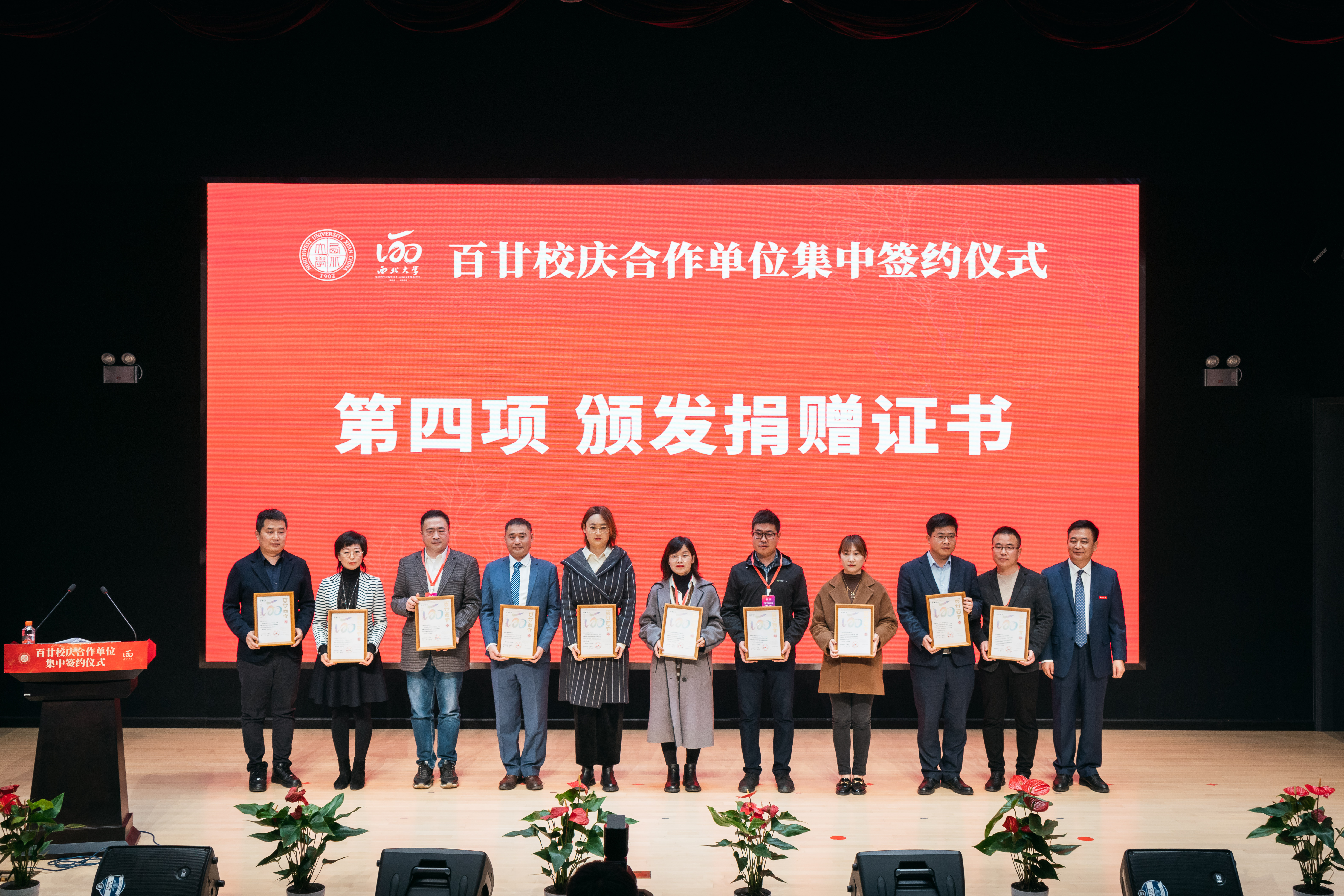 仪式上,王亚杰代表学校为捐赠企业颁发了捐赠证书。
