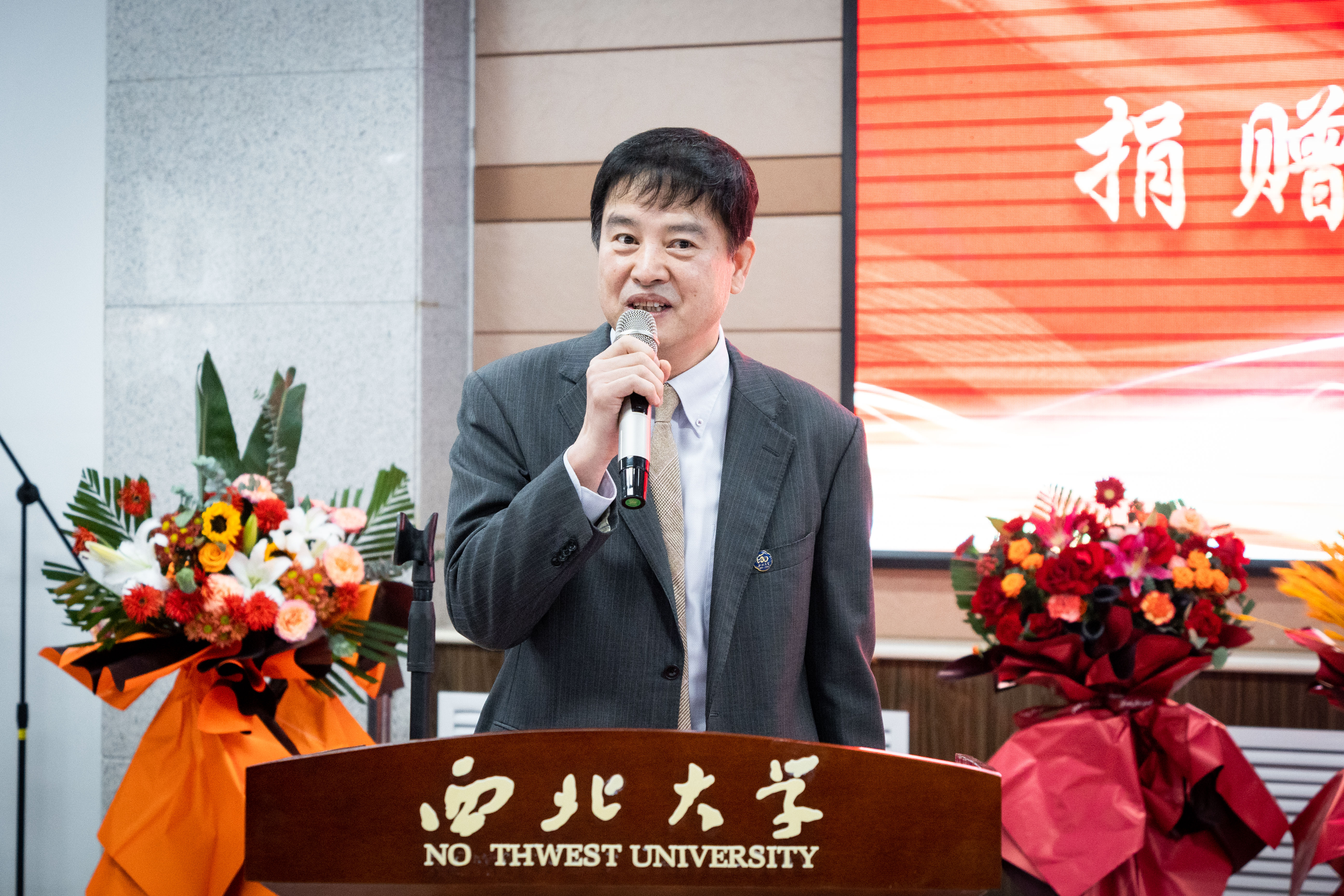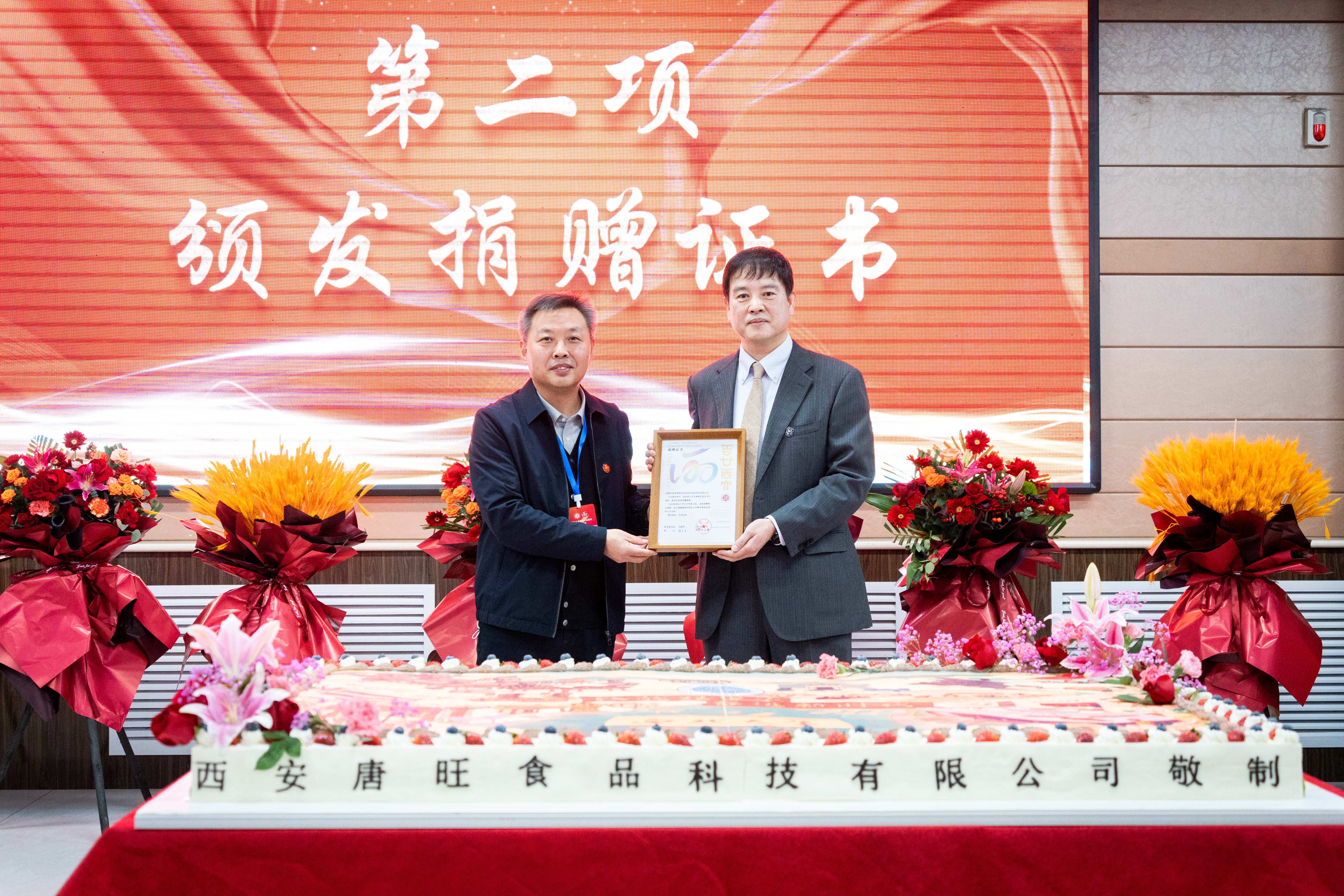 后勤集团负责人为捐赠者代表、校友李俊峰颁发捐赠证书。李俊峰在发言中感激了栽培自己成长的恩师与母校,他表示,走出母校,融入社会,服务国家,展现出西大人的担当,无论身处何处,心中时刻眷恋并牵挂着母校,与母校同呼吸共命运。他代表广大校友,向母校送上学子们深深的祝福。