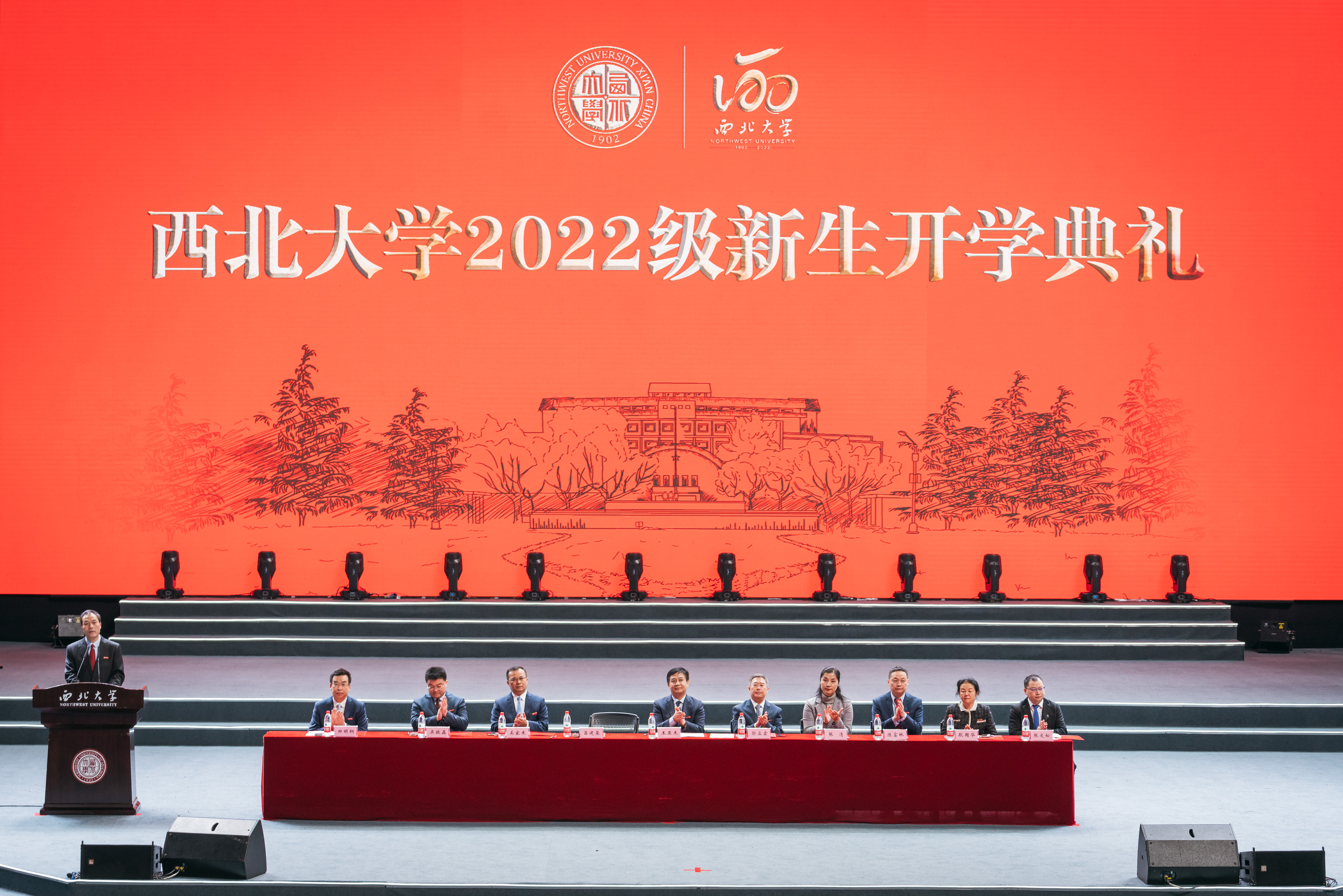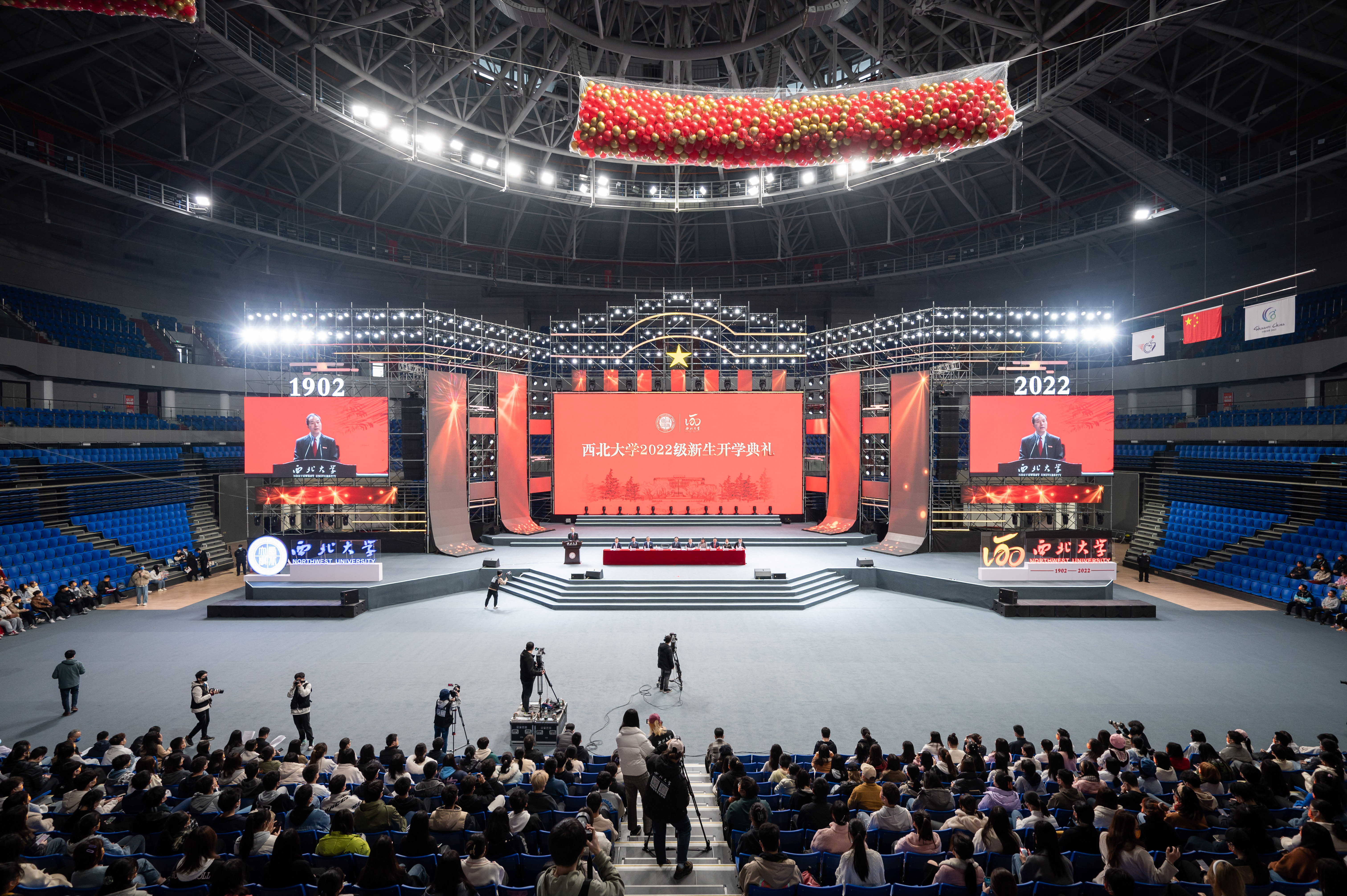 11月12日上午,beat365唯一官网2022级新生开学典礼在长安校区体育馆举行,全体在校校领导,国家级教学名师耿国华教授,beat365官网物理学院2001级校友、西安和其光电科技股份有限公司董事长张文松先生出席典礼。学校机关各部门主要负责人、各院(系)党政主要负责人、教师代表和全体2022级新生参加典礼。本次典礼采取线上和线下相结合的形式举行。典礼由校党委副书记吕建荣主持。
