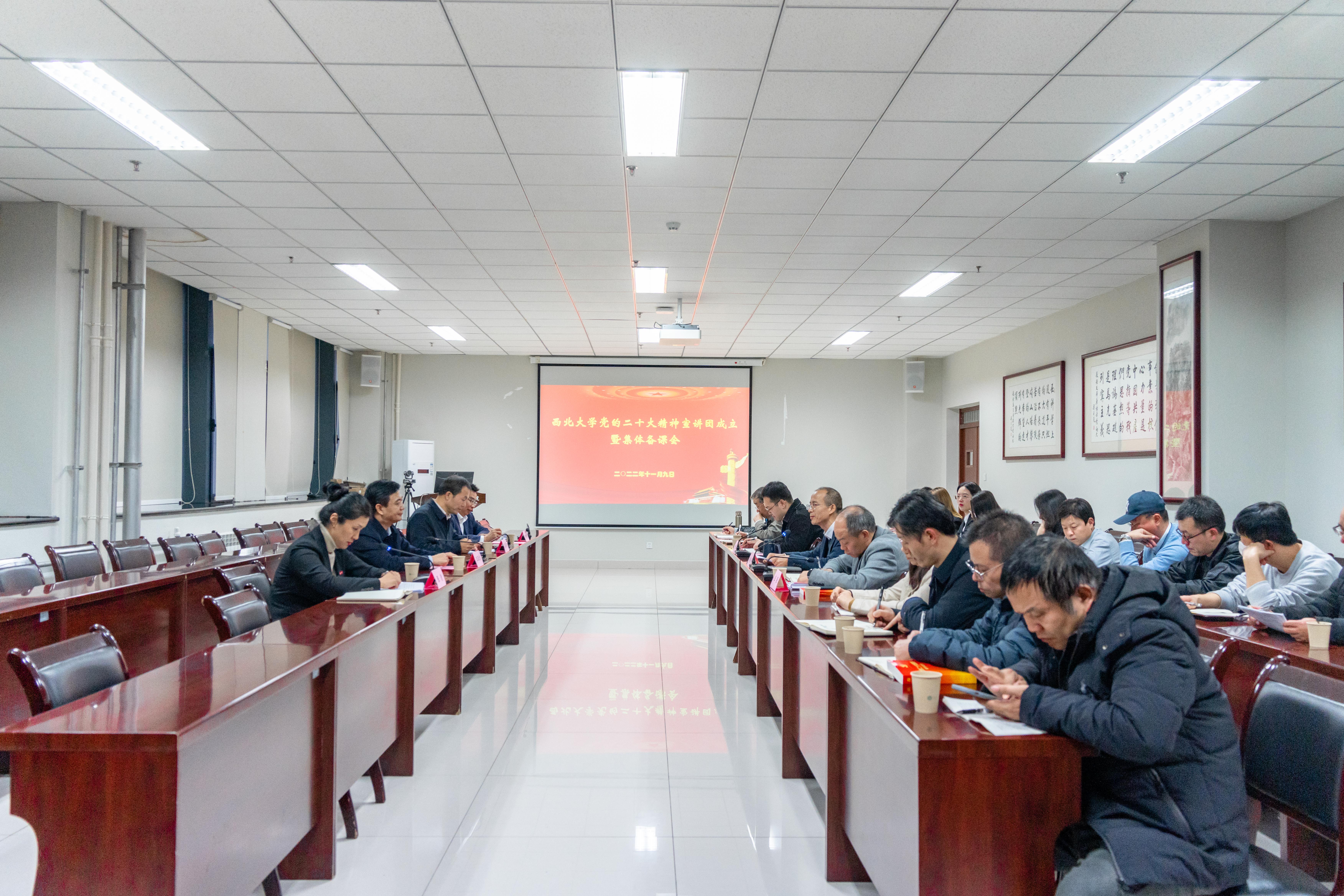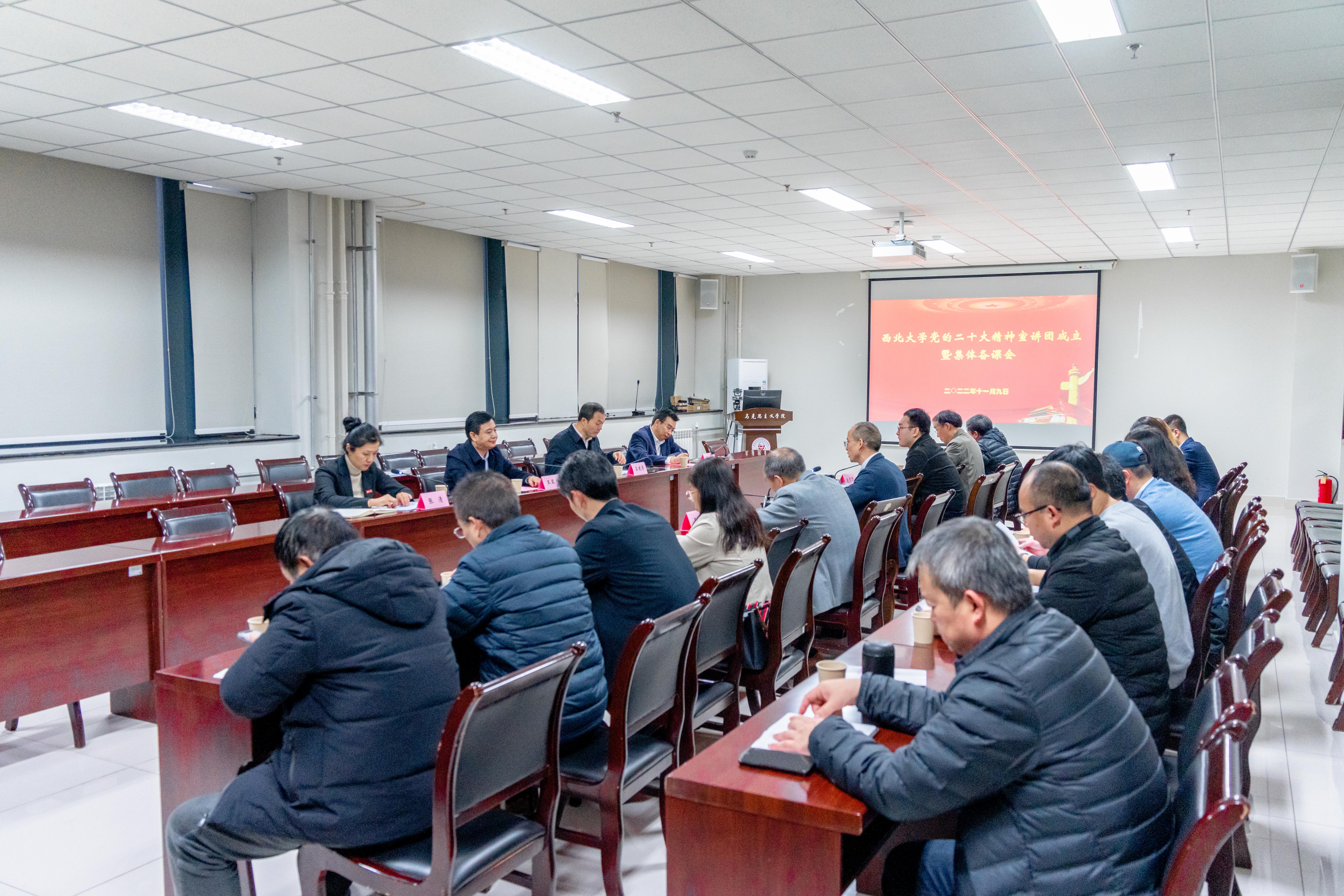11月9日下午,学校在长安校区举行党的二十大精神宣讲团成立暨集体备课会。宣讲团团长、校党委书记王亚杰出席会议并作动员讲话。校党委副书记、马克思主义学院院长吕建荣,校党委常委、宣传部部长田明纲,宣讲团全体成员参加了会议。会议由校党委副书记张清主持。