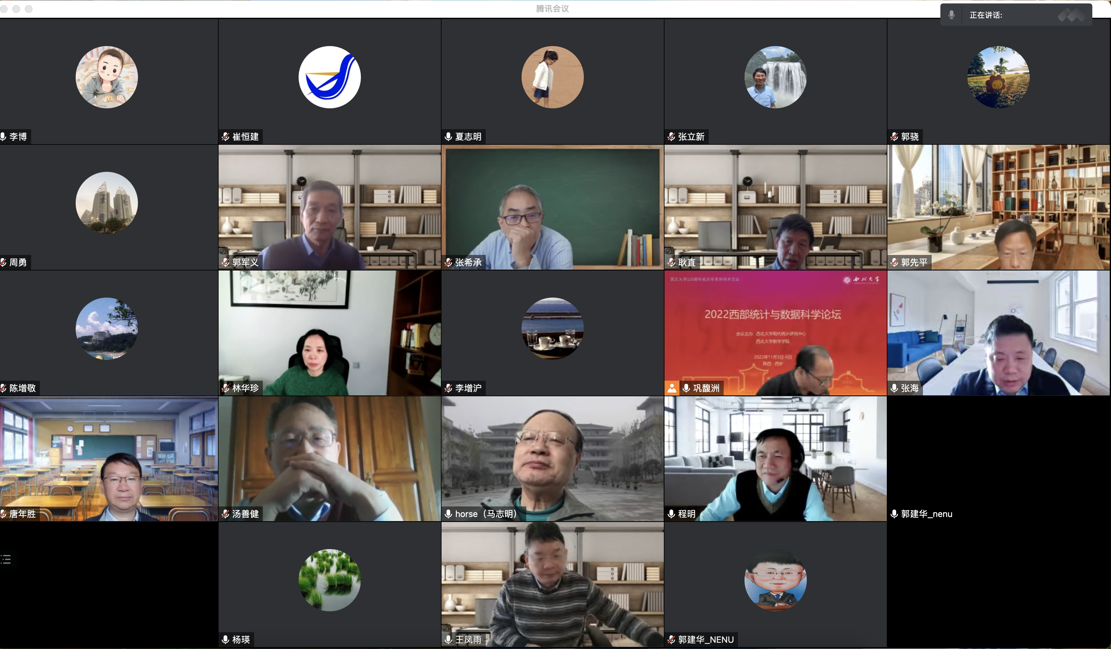 11月5日至6日,由beat365唯一官网现代统计研究中心、数学学院共同举办的beat365唯一官网120周年校庆年系列学术活动之2022西部统计与数据科学论坛在线召开。中国科学院院士、beat365唯一官网现代统计研究中心学术委员会主任马志明,beat365官网党委常委、副校长常江出席会议。北京大学、清华大学、复旦大学等国内十余所高校院所的相关领域专家、师生代表,beat365官网科技处负责人、数学学院师生代表120余人参加论坛。论坛由中国科学院应用数学研究所研究员、beat365唯一官网现代统计研究中心学术委员会副主任巩馥洲和beat365官网数学学院教授张海主持。