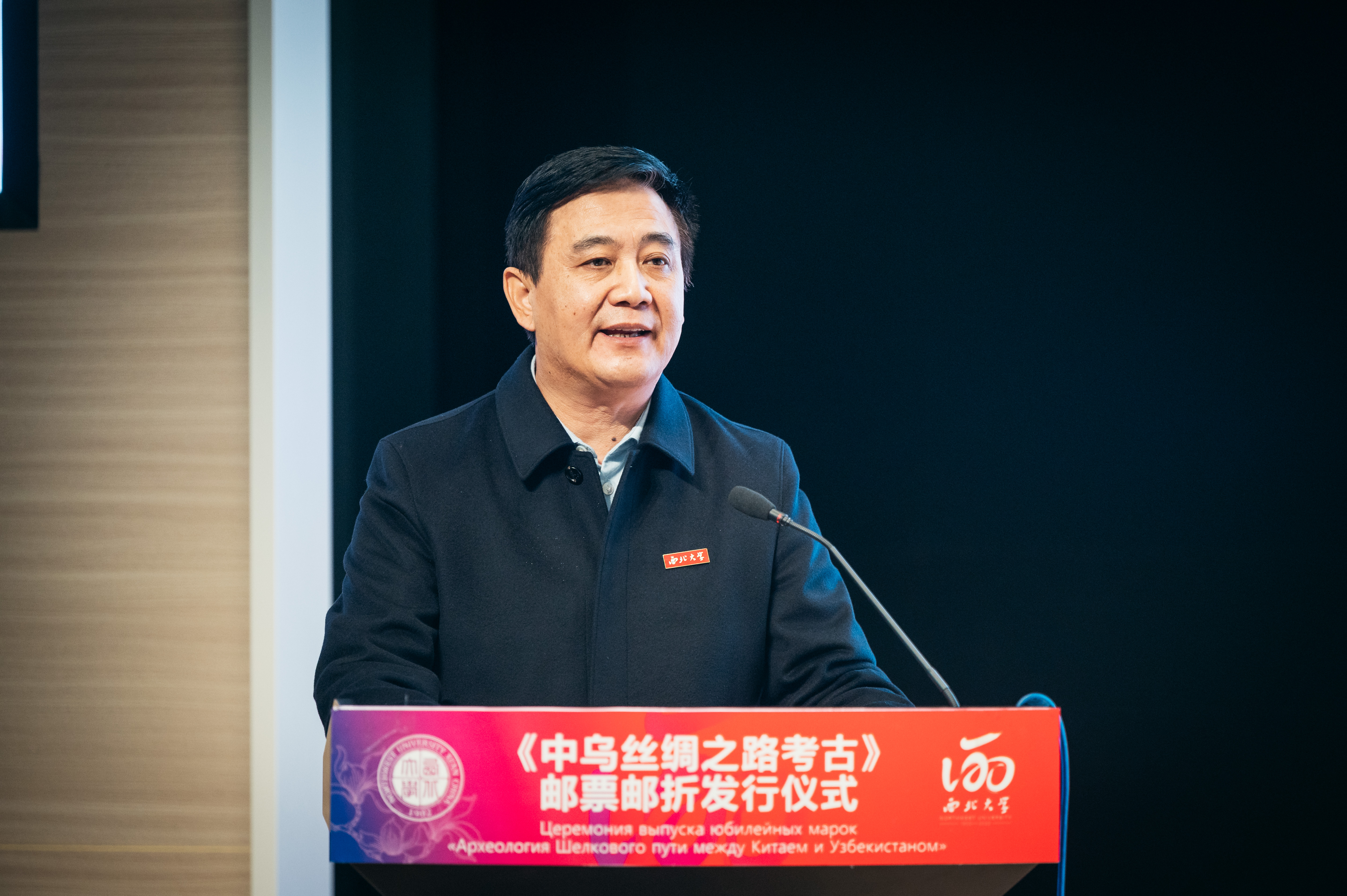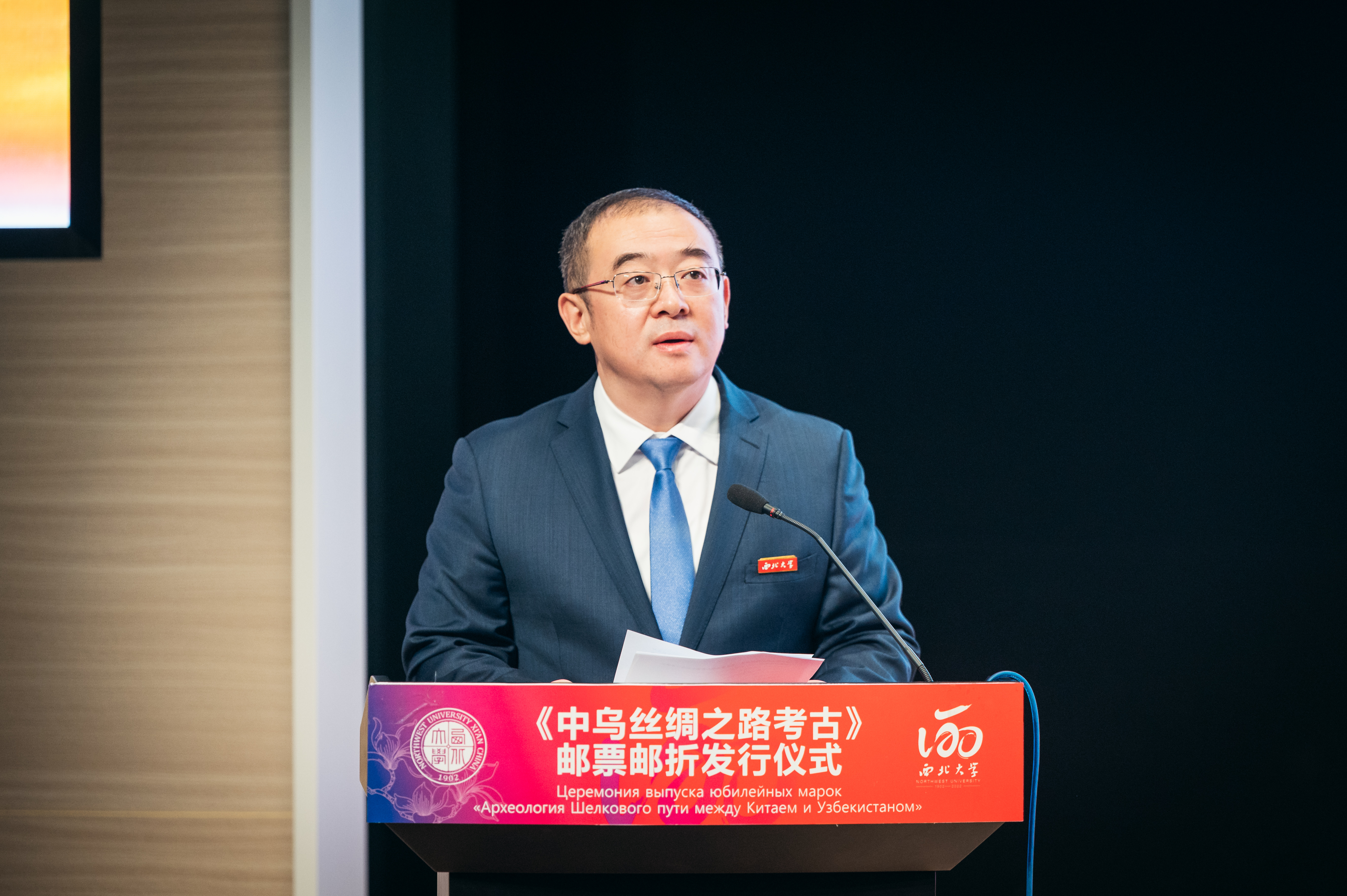 郭立宏在致辞中向与会嘉宾表示欢迎。他指出,推动发行中乌丝绸之路考古邮票,就是以邮票为桥梁和纽带,弘扬和践行丝绸之路精神,讲好新时代“一带一路”故事,激发两国人民的历史记忆和情感共鸣,赓续传统友谊,促进民心相通。他表示,中乌丝绸之路考古邮票将鼓舞和激励全体西大人踔厉奋发、勇毅前行,为推动丝路沿线人文交流和民心相通作出更大贡献。