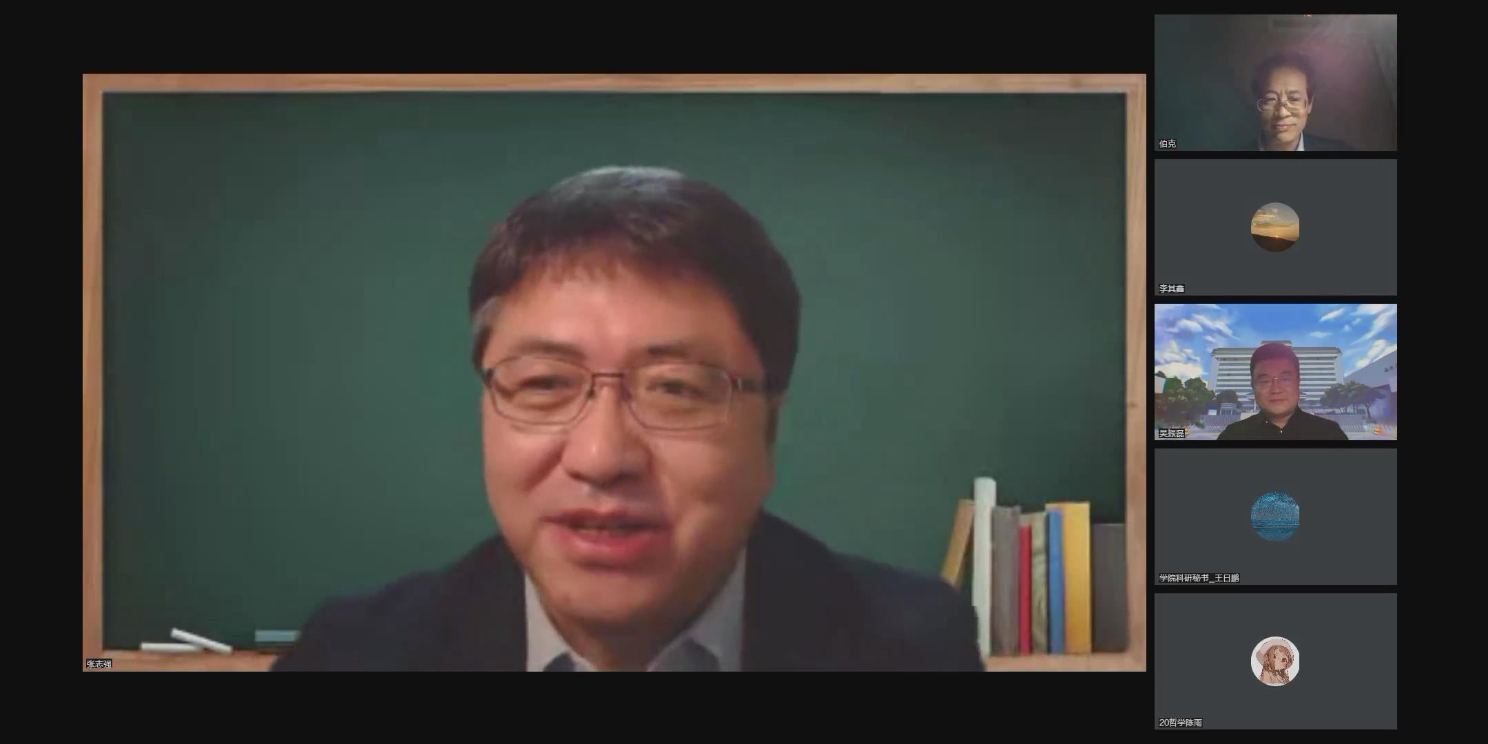 10月14日晚,中国社会科学院哲学所所长张志强研究员做客beat365官网“侯外庐学术讲座”第246讲暨beat365唯一官网120周年校庆年系列活动、百廿西大校庆哲院系列讲座第一讲,在线作了题为“略论中国哲学的特质”的学术讲座。校党委常委、副校长吴振磊致欢迎辞,哲学学院张学广教授主持讲座。哲学学院师生300余人参加了讲座。