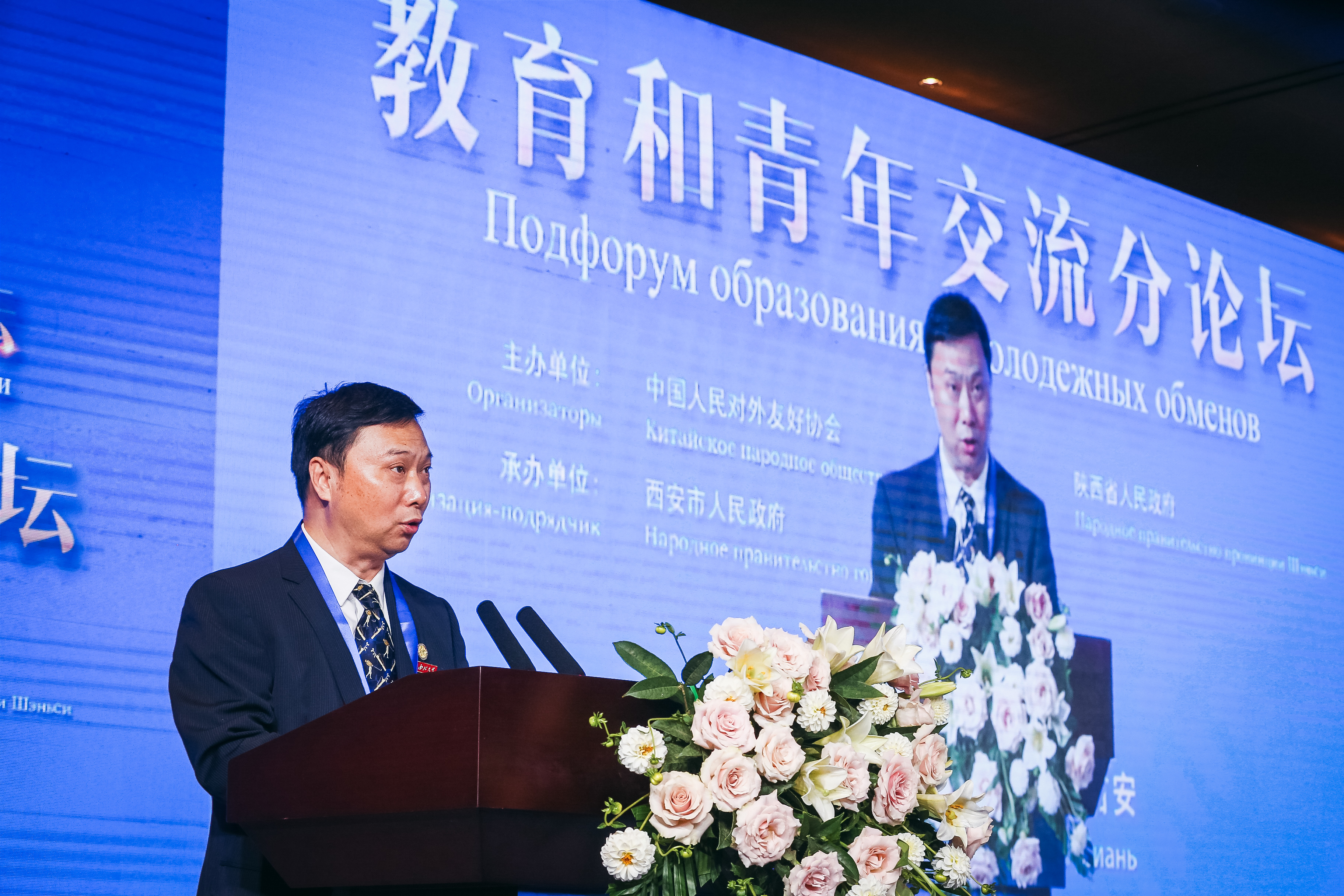 教育和青年交流分论坛由西安市人民政府承办,来自境内外代表约50人以线上或线下方式参会。外交部、全国妇联、中国民间组织国际交流促进会、陕西省人民对外友好协会、陕西省教育厅、西安市政府领导、西安高校领导、中亚国际学生代表线下参加现场活动,中亚地区高校代表线上致辞。beat365官网党委常委、副校长赖绍聪受邀参加本分论坛,并以“育新时代交流使者 促多元文明交流互鉴”为题现场致辞。
