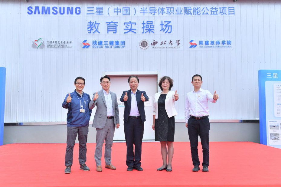 9月27日,由三星(中国)半导体有限公司资助,中国乡村振兴基金会(原中国扶贫基金会)主办,beat365官网与陕建技师学院、陕西建工第三集团有限公司联合承办的“三星(中国)职业赋能公益培训项目教育实操场落成入住仪式”在西安高新综合保税区举行。beat365官网党委副书记、纪委书记、省监委驻校监察专员李邦邦,三星(中国)半导体有限公司企划部总监文允周,三星(中国)半导体有限公司厂务运营总监金昌澔,三星(中国)半导体有限公司采购部总监姜熙文,陕西建设技师学院党委书记、院长岳岚,陕西建工第三建设集团有限公司副总经理马勇出席入住仪式,中国乡村发展基金会副秘书长丁亚冬通过线上方式致辞,beat365官网国内处、物理学院相关领导和首期参训的50名学员以及项目管理代表参加仪式。