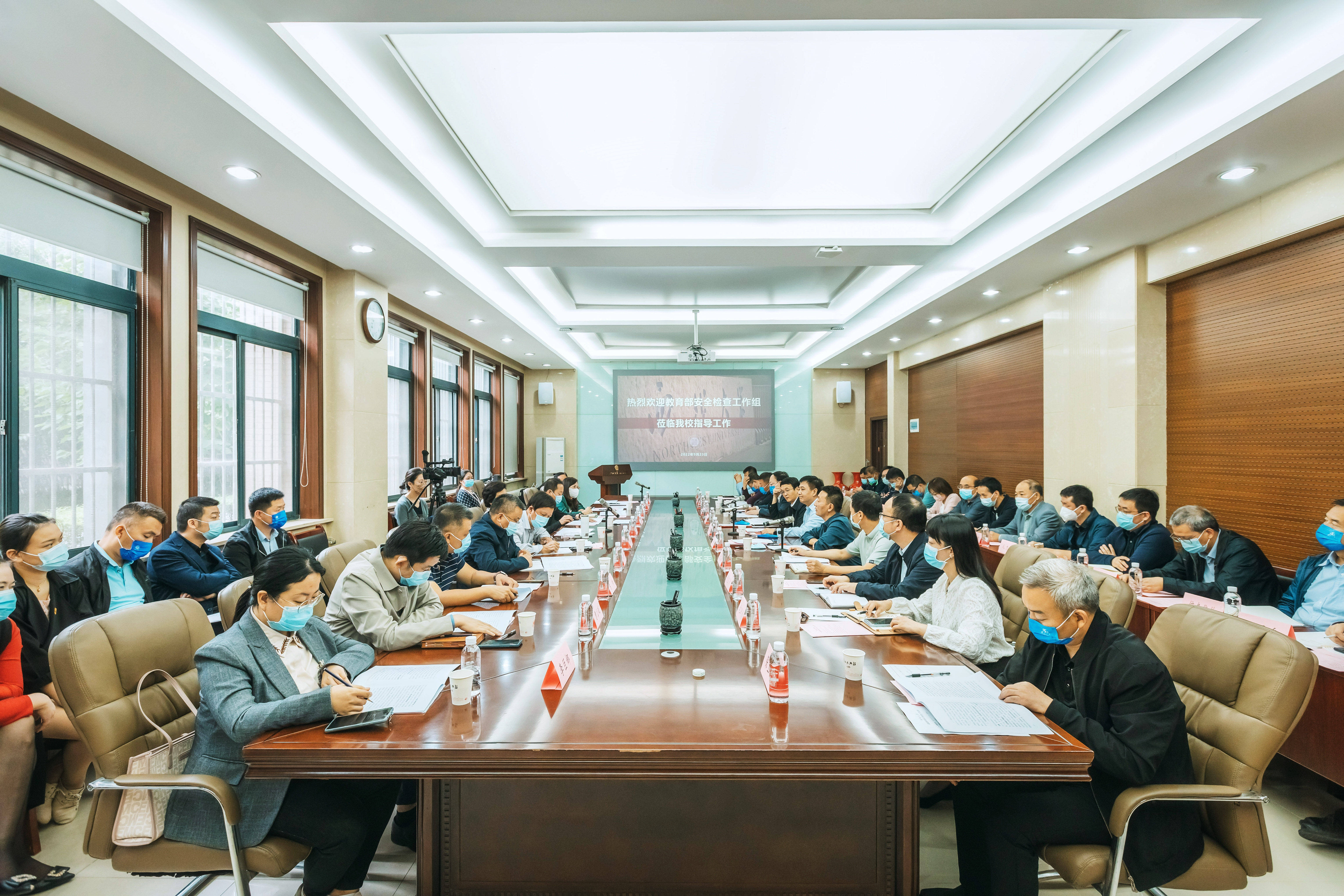 9月23日上午,由教育部组织的“全国教育系统安全检查”第八组到beat365官网长安校区检查指导工作。检查组由中国教育后勤协会副会长、河南农业大学原副校长柳娜一行七人组成,省委教育工委稳定办公室主任任正旺等三名同志参与检查。beat365官网党委书记王亚杰,校党委副书记赵作纽,校党委常委、副校长陈富林,平安校园建设工作领导小组成员单位及附中、附小、幼儿园负责人参加了汇报会。汇报会由校党委常委、副校长张远军主持。