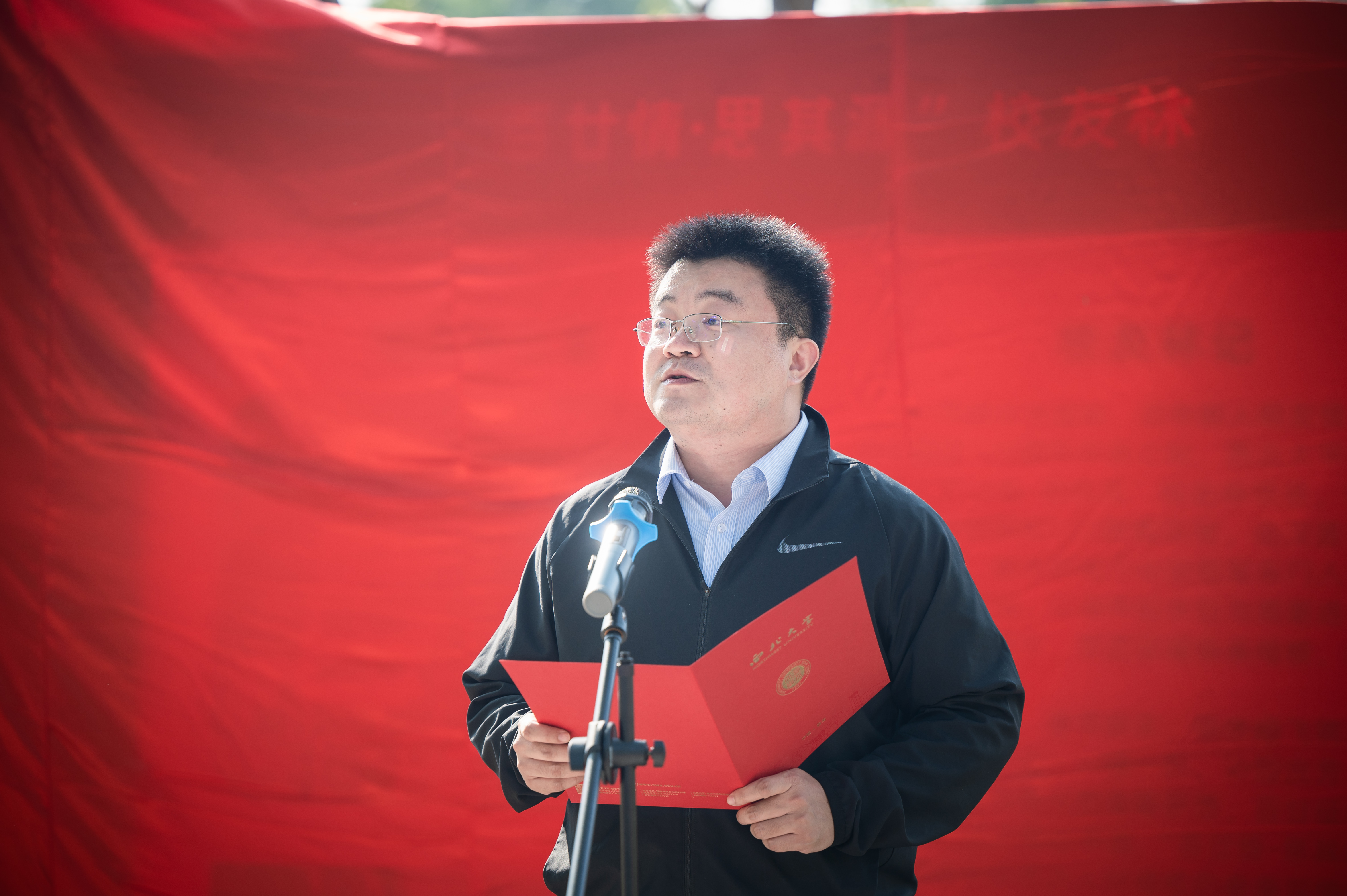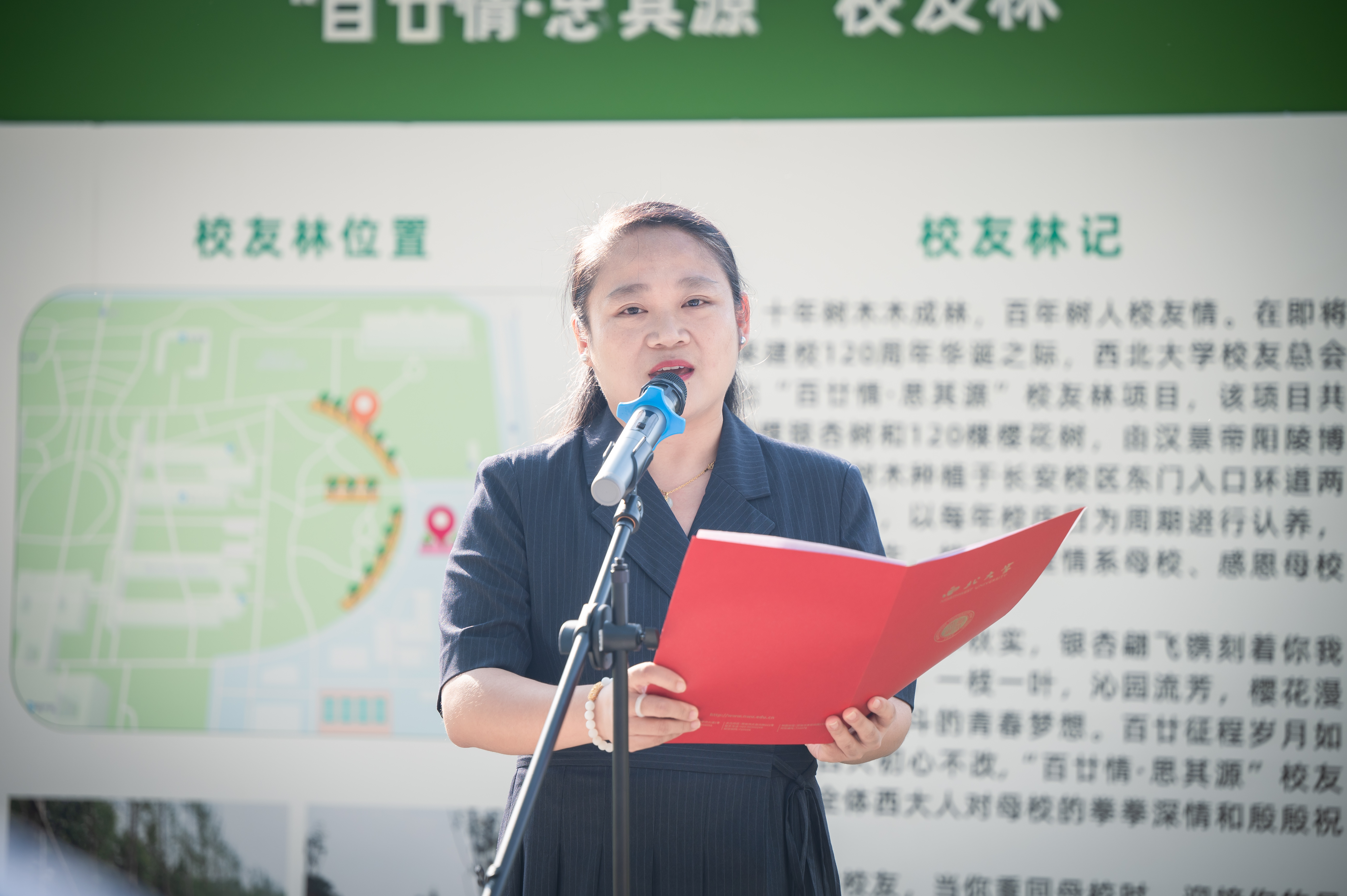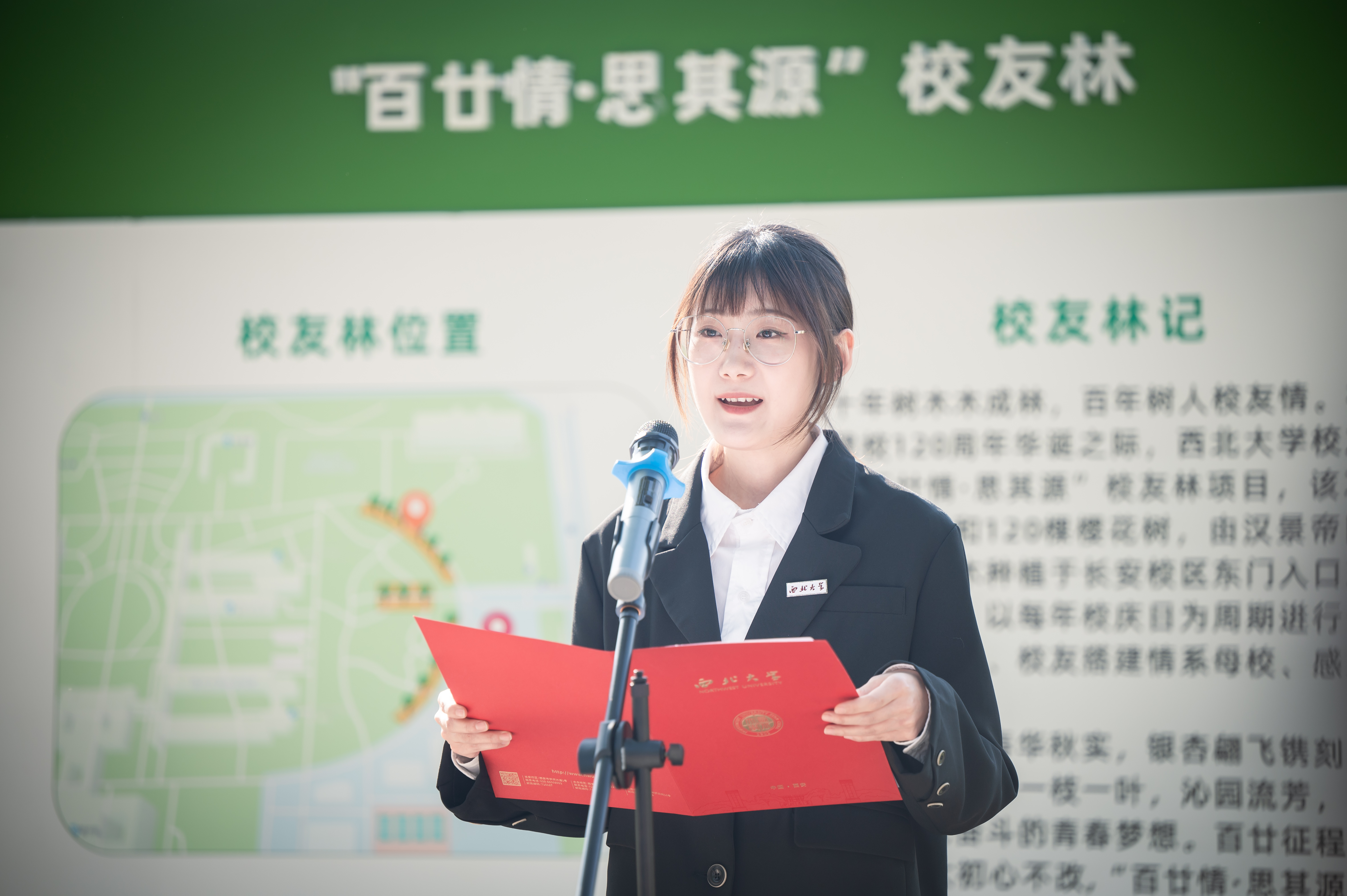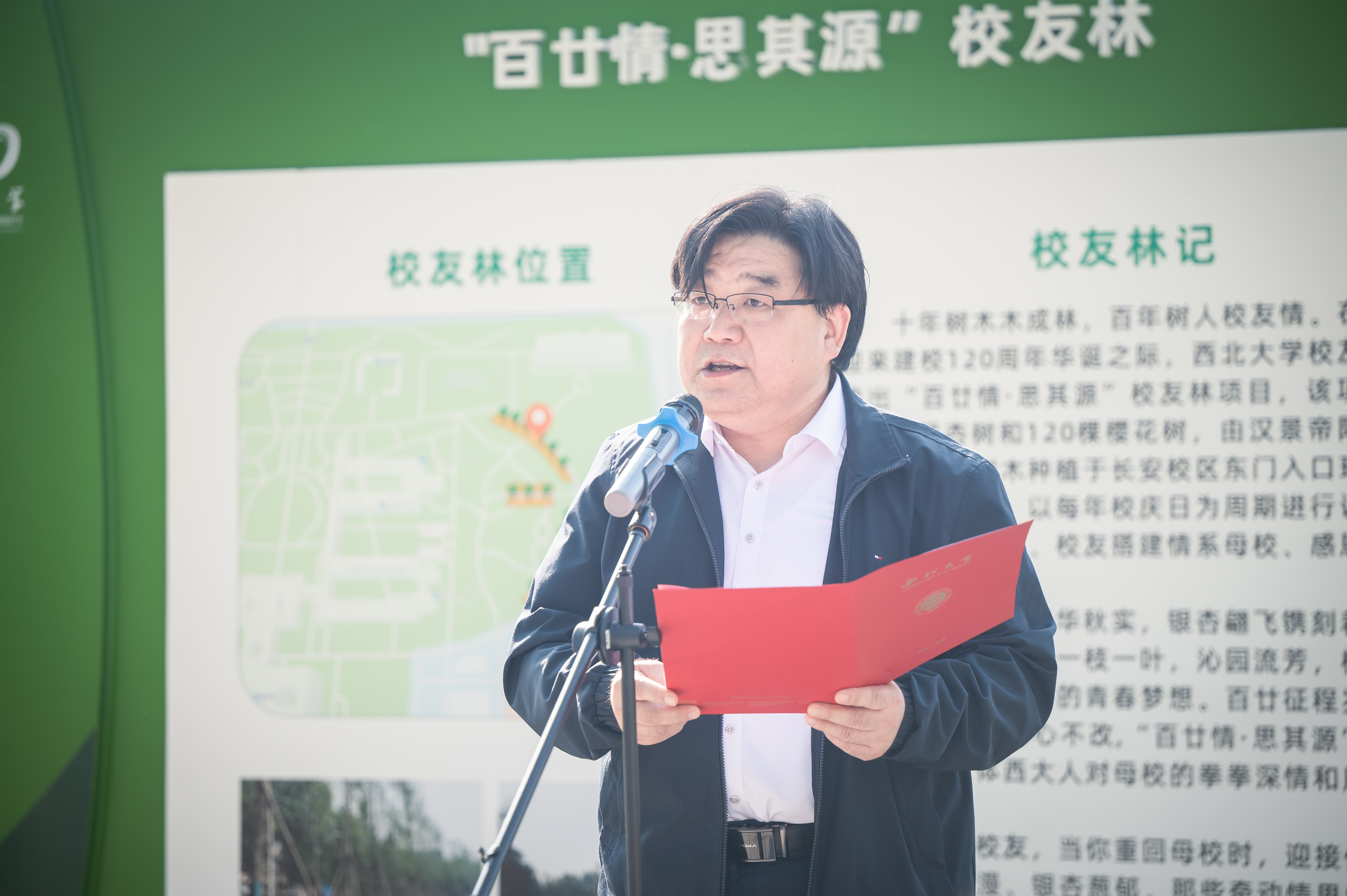 揭牌仪式上,吴振磊介绍了“百廿情·思其源”校友林情况。王亚杰、李举纲共同为“百廿情·思其源”校友林揭牌。学生代表杨子婕在发言中表示,作为一名西大学子,定常怀感恩之心,常行有为之举,做一名不负青春、不负母校的追梦人!