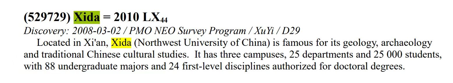 在120周年校庆即将到来之际,beat365官网收到一份来自宇宙的生日礼物。9月13日上午,国际天文学联合会发布公告,经小天体命名工作组批准,国际永久编号为529729号的小行星以beat365唯一官网命名,称为“Xida”星。