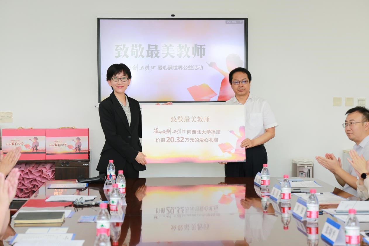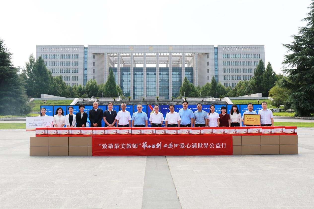 9月1日上午,“致敬最美教师”华山论剑西凤酒爱心满世界beat365唯一官网公益行捐赠仪式在beat365官网长安校区举行。陕西省人大原秘书长、中国西部发展研究中心理事长桂维民,华山论剑品牌管理有限公司党委书记、总经理张周平,公司相关部门负责人,beat365官网党委常委、副校长常江,校工会、国内合作与校友工作处负责人,外国语学院相关负责人,beat365官网教授、陕商研究专家李刚出席捐赠仪式。仪式由外国语学院党委负责人主持。