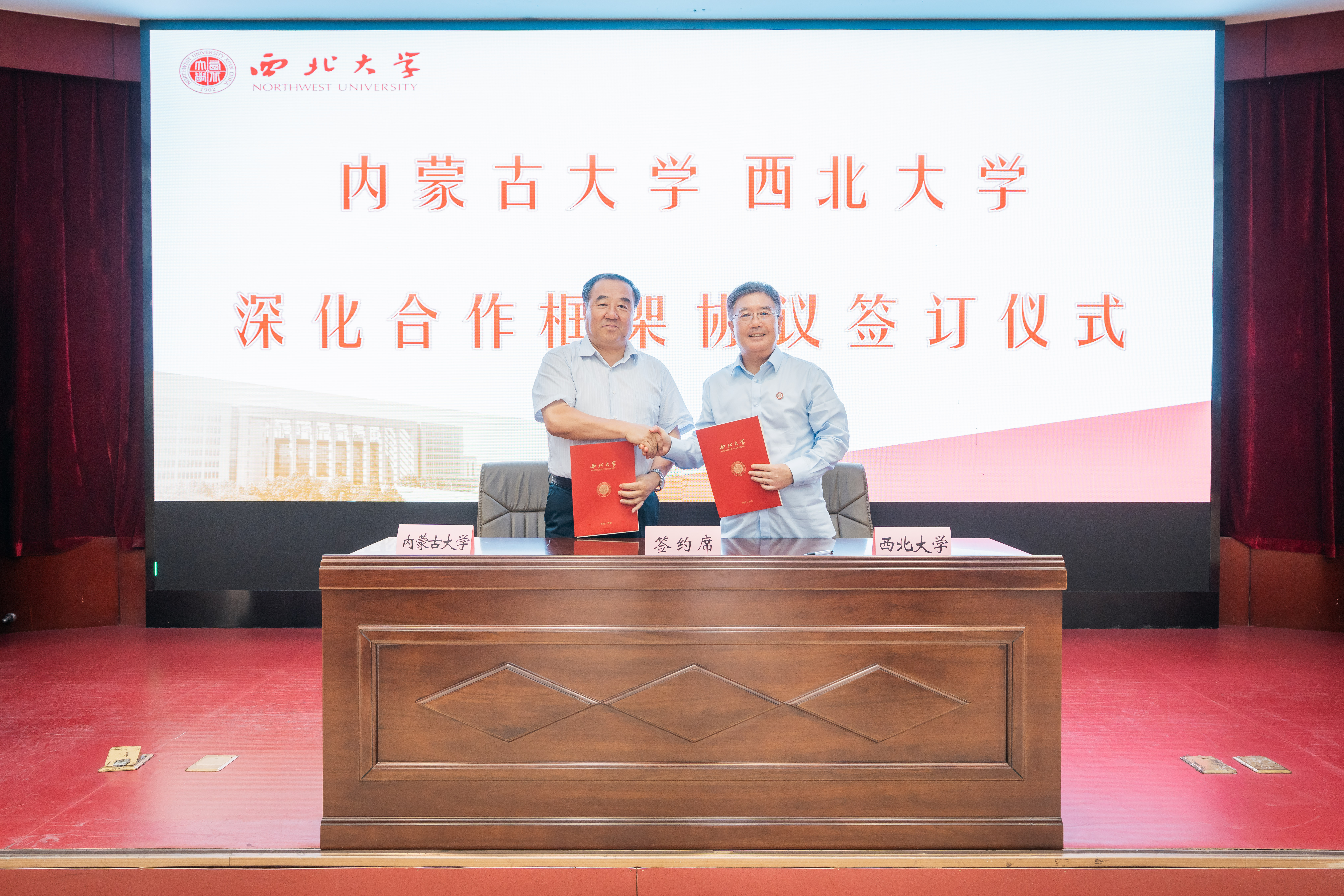 郭立宏和刘志彧分别代表两校签订了《beat365唯一官网与内蒙古大学深化合作框架协议》。