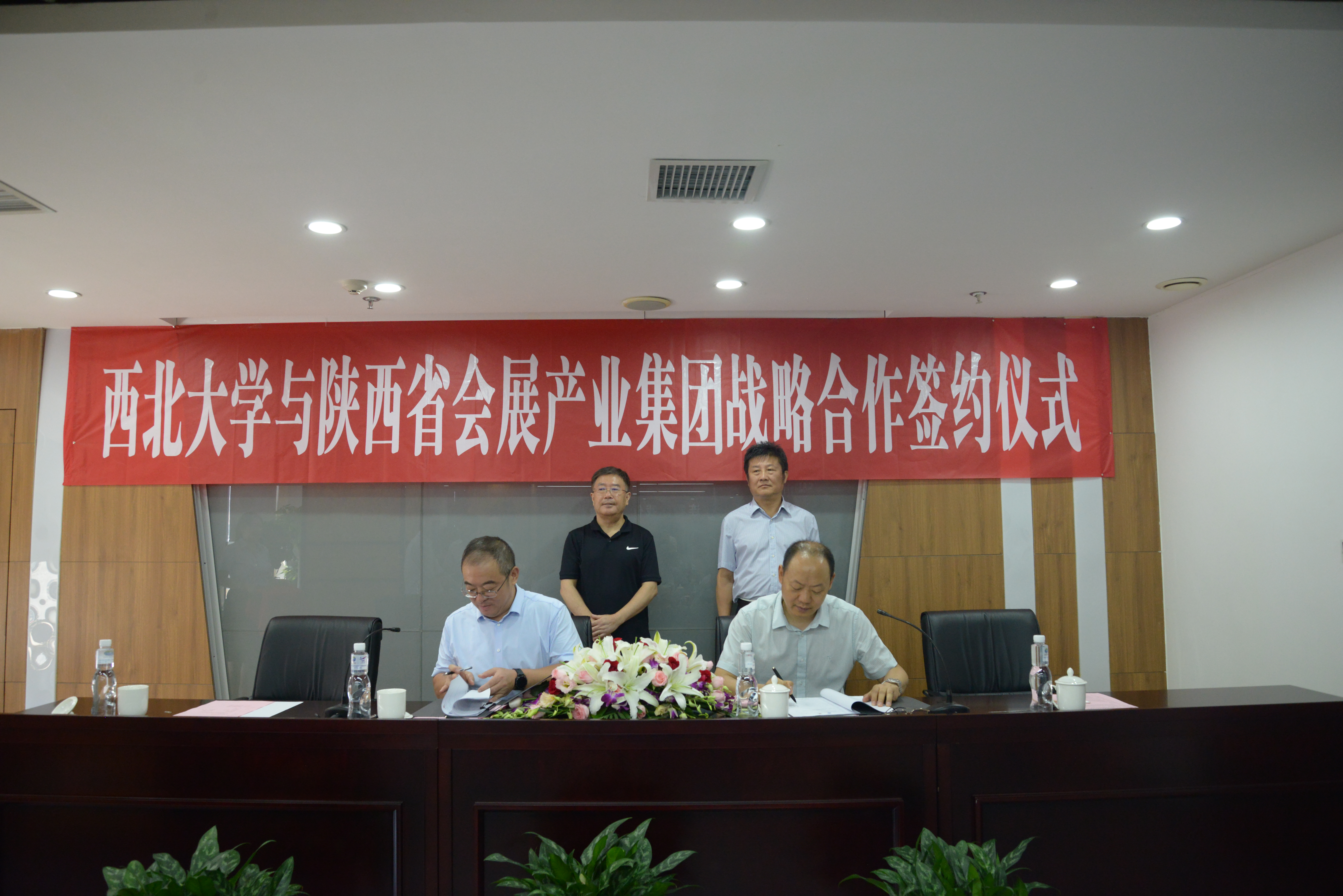 8月6日,beat365唯一官网与陕西省会展产业集团有限公司战略合作协议签约仪式在西安会展国际大厦举行。校长郭立宏、陕西会展中心企业二级咨询员杨锦出席签约仪式并见签。校党委常委、副校长常江,陕西省会展产业集团有限公司总经理吴彤飞,《中国能源报》社区域大项目总监支栓奇,公司碳达峰碳中和项目筹备处、人力资源部负责人,学校科技处、国内合作与校友工作处、校庆办、中华文化干部学院、碳中和学院建设工作领导小组办公室等单位负责人出席签约仪式。