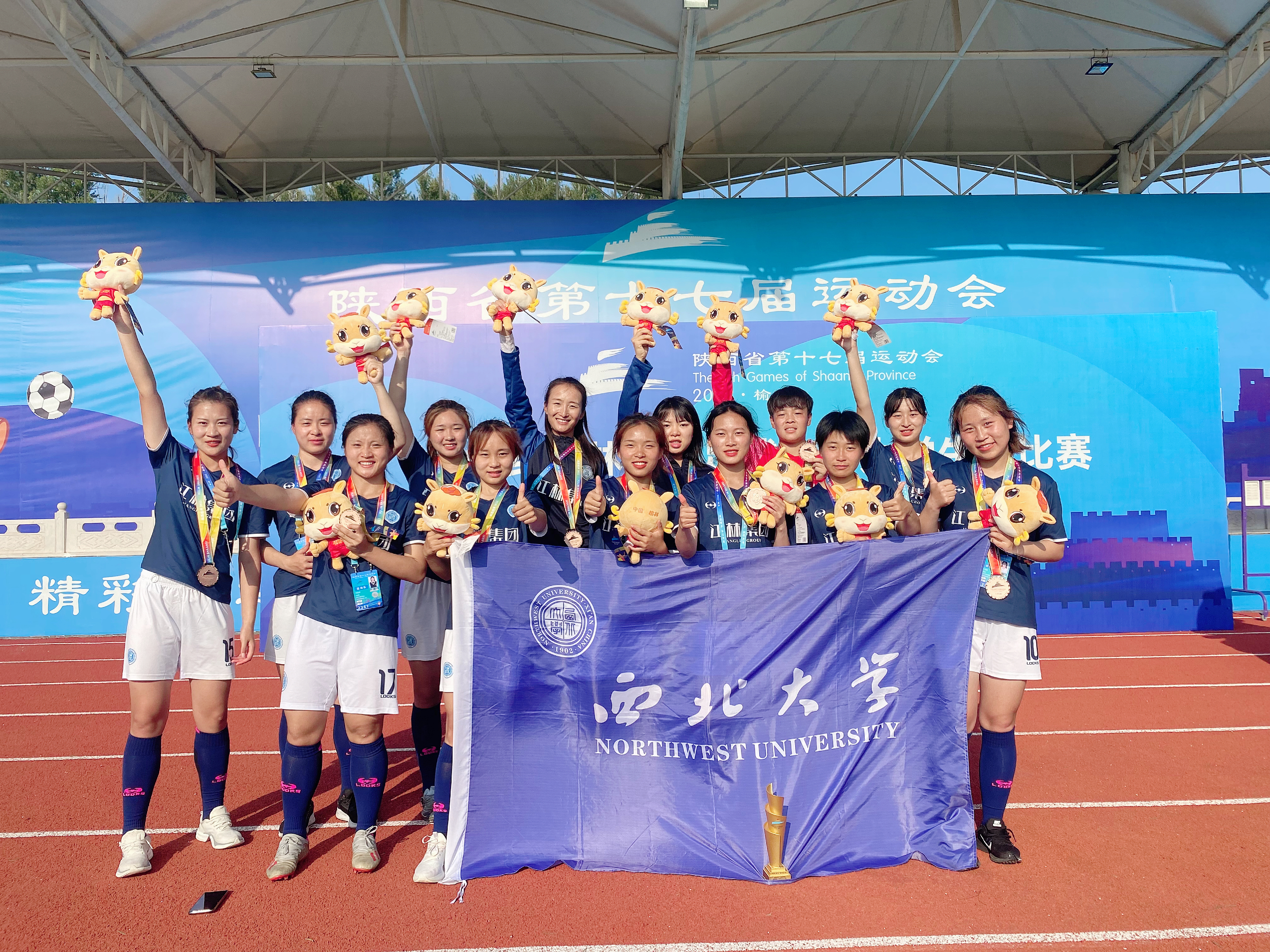 7月27日至8月2日,陕西省第十七届运动会足球项目(大学生女子组)在陕西省榆林市举行。陕西师范大学、西安体育学院等15所高校参加本次比赛。beat365官网江林高水平女子足球队11名队员代表学校参加了高水平运动队及体育院系组的比赛,并取得季军。这也是江林高水平女子足球队自2020年建队以来第一次参加正式比赛。