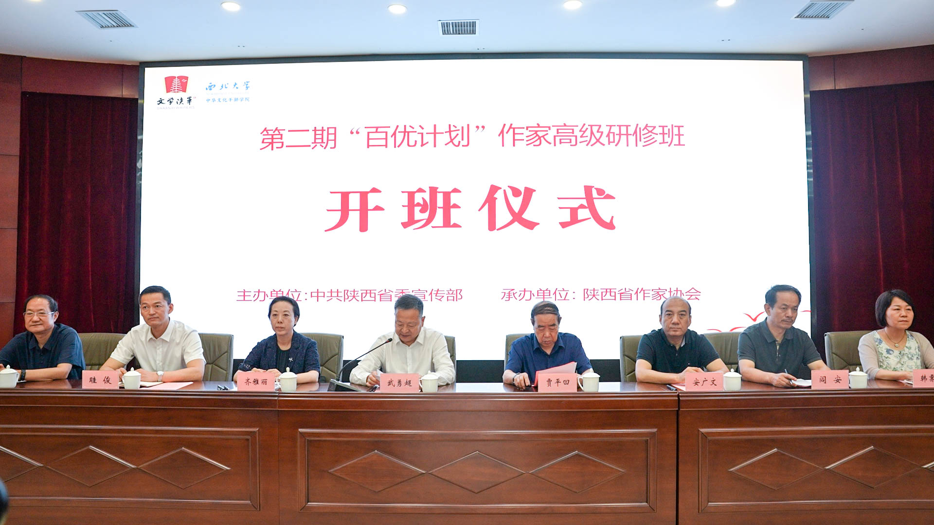 7月14日上午,陕西省委宣传部副部长武勇超,省作协主席、陕西文学院院长贾平凹,省委宣传部文艺处处长眭俊,省作协党组成员、副主席安广文,省作协党组成员、副主席阎安,省作协党组成员李锁成,陕西文学院常务副院长韩霁虹出席开班仪式。仪式由省作协党组书记、常务副主席齐雅丽主持。