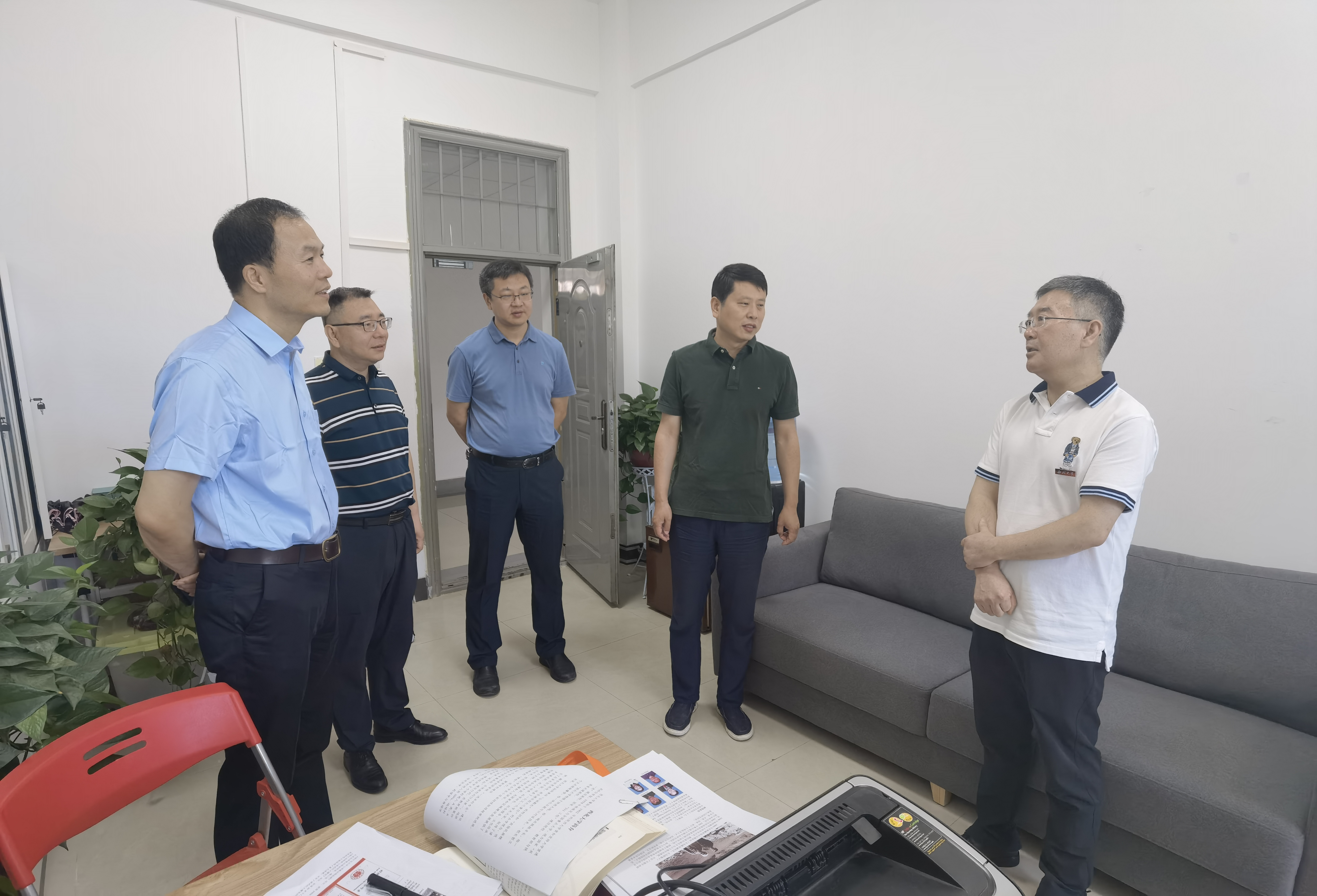 7月23日,校长郭立宏,校党委副书记吕建荣到校庆办慰问工作人员,党(校)办负责人陪同。