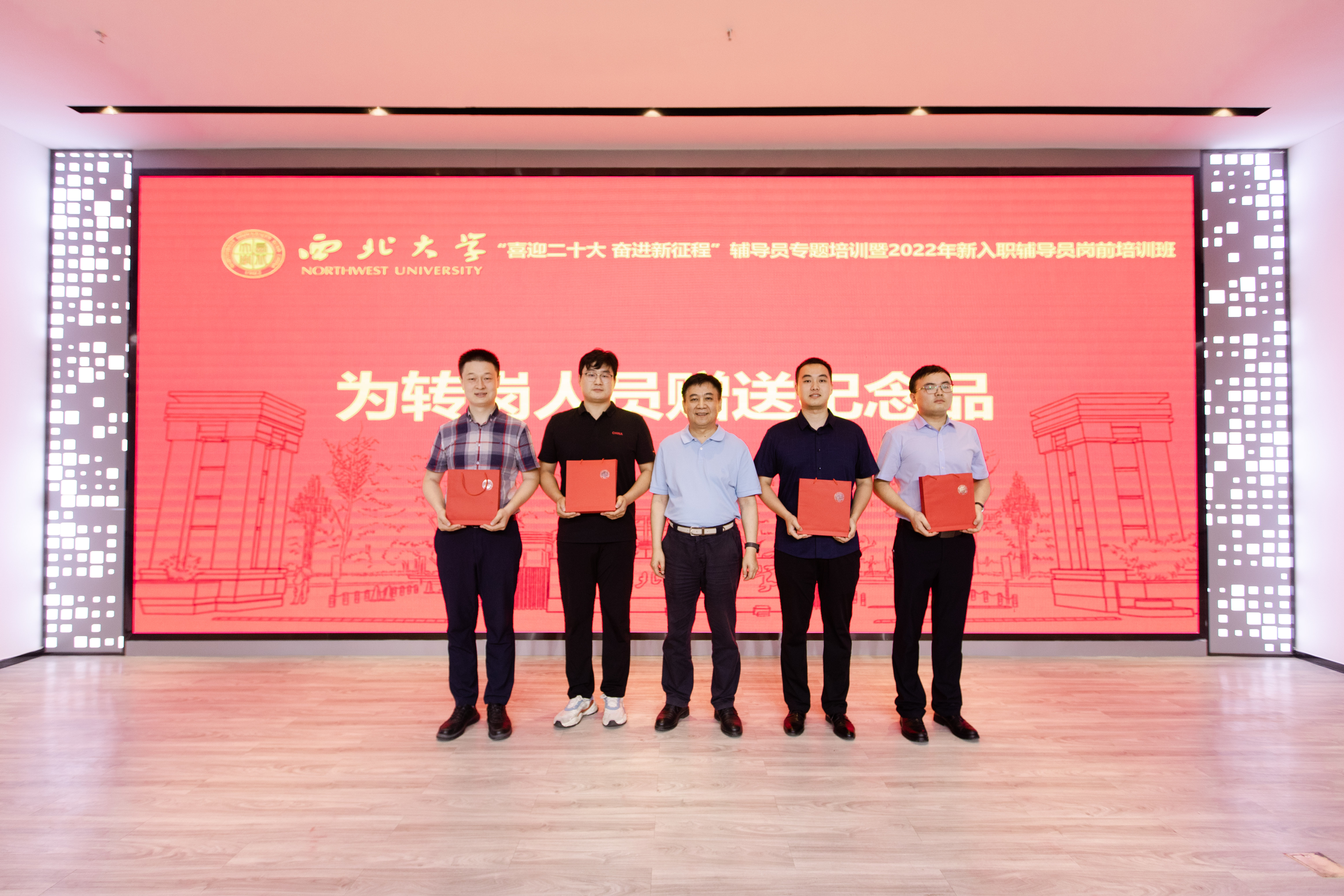 学工部负责人介绍了beat365官网辅导员队伍的基本情况。王亚杰为2022年从学生工作岗位上转岗的同志们赠送了纪念品。新入职辅导员、新入职管理人员代表,上半年学生工作干部转岗人员代表,老辅导员代表作了交流发言。