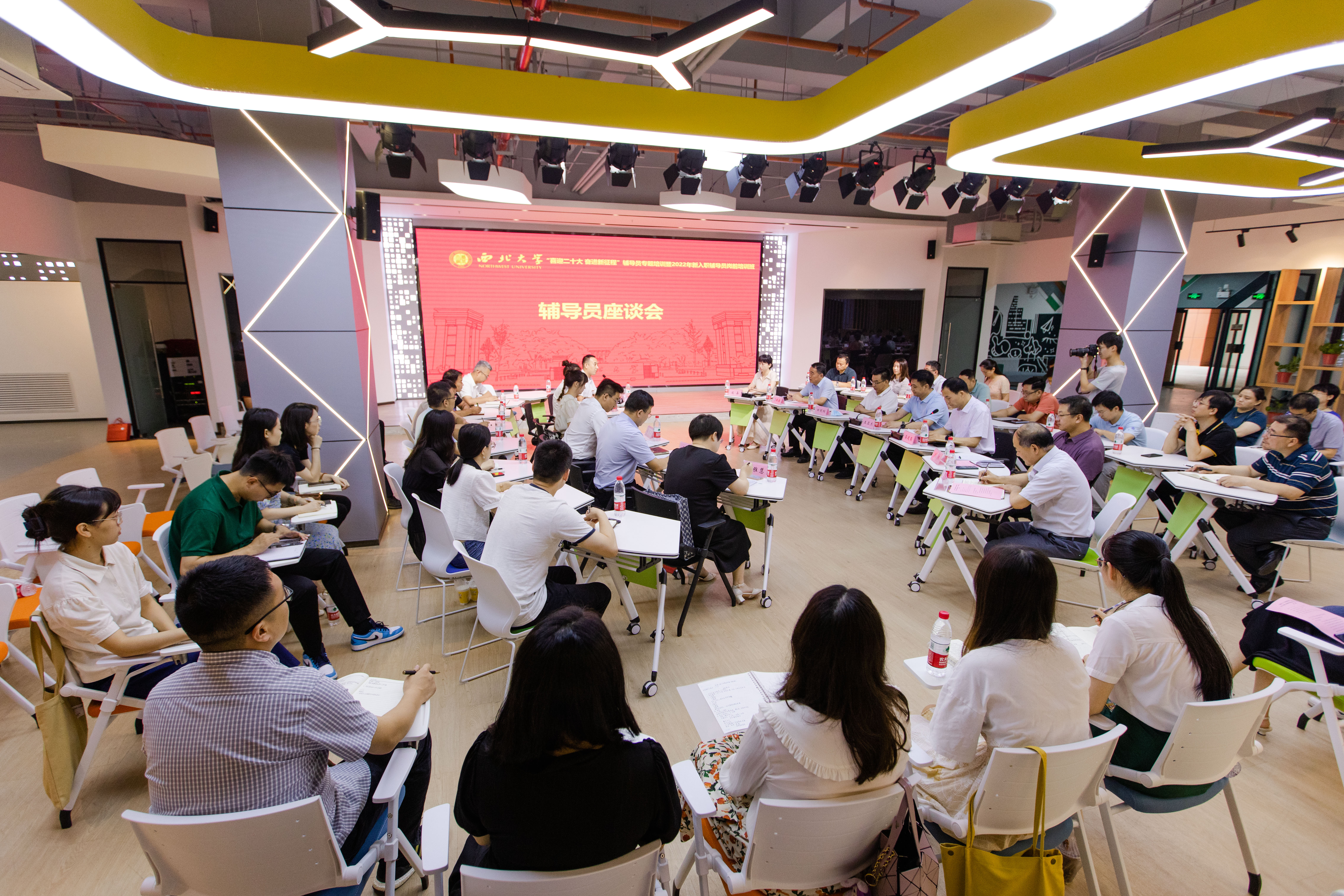 7月15日上午,“2022年新入职辅导员岗前培训辅导员座谈会”在长安校区“三创空间”路演厅举办。校党委书记王亚杰,校党委常委、宣传部部长田明纲,党(校)办、组织部、教工部、学工部、校团委主要负责人,各院系学生工作负责人,学工部门干部,新入职辅导员、新入职管理人员,上半年学生工作干部转岗人员参加了座谈会。座谈会由校党委副书记吕建荣主持。