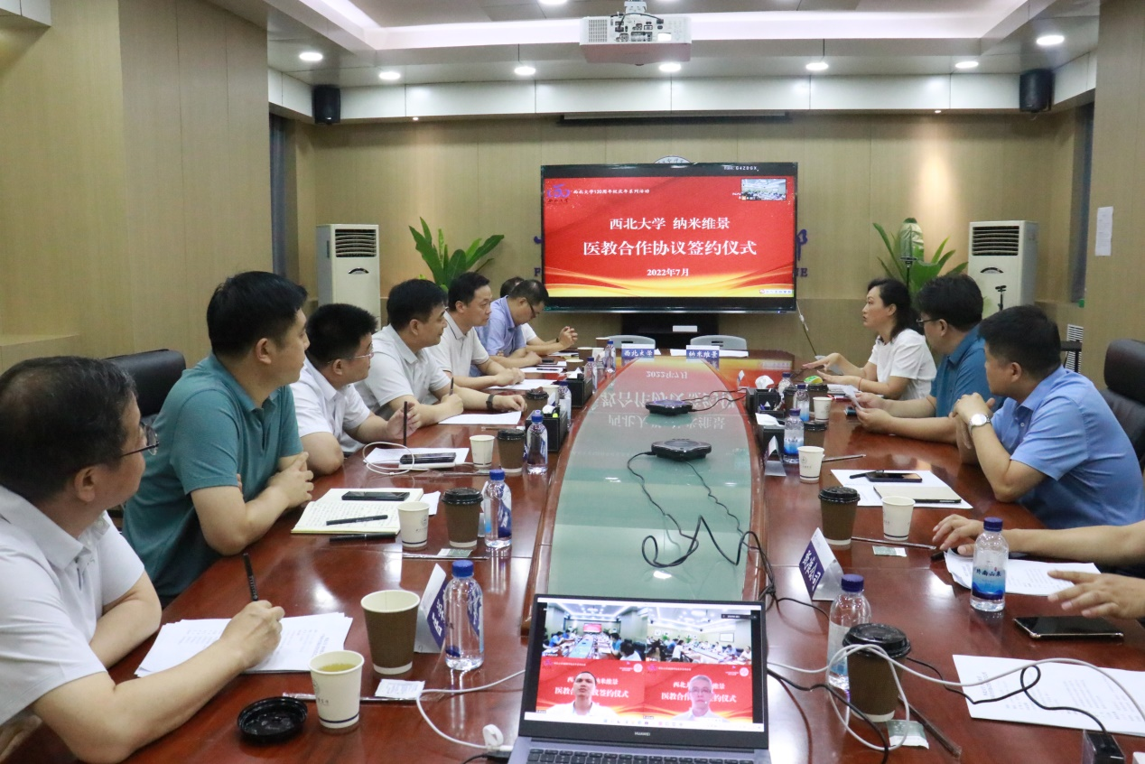 7月13日下午,纳米维景公司一行来校洽谈合作并签署合作协议。校党委书记王亚杰,校党委常委、副校长吴振磊,纳米维景公司西区总监潘江、科研总监王程以及beat365官网科技处、国内处、医学院等相关单位主要负责人出席,纳米维景公司CEO李运祥、副总裁米弘斌线上参加了签约仪式。签约仪式由校党委常委、副校长,生命科学与医学部主任陈富林主持。