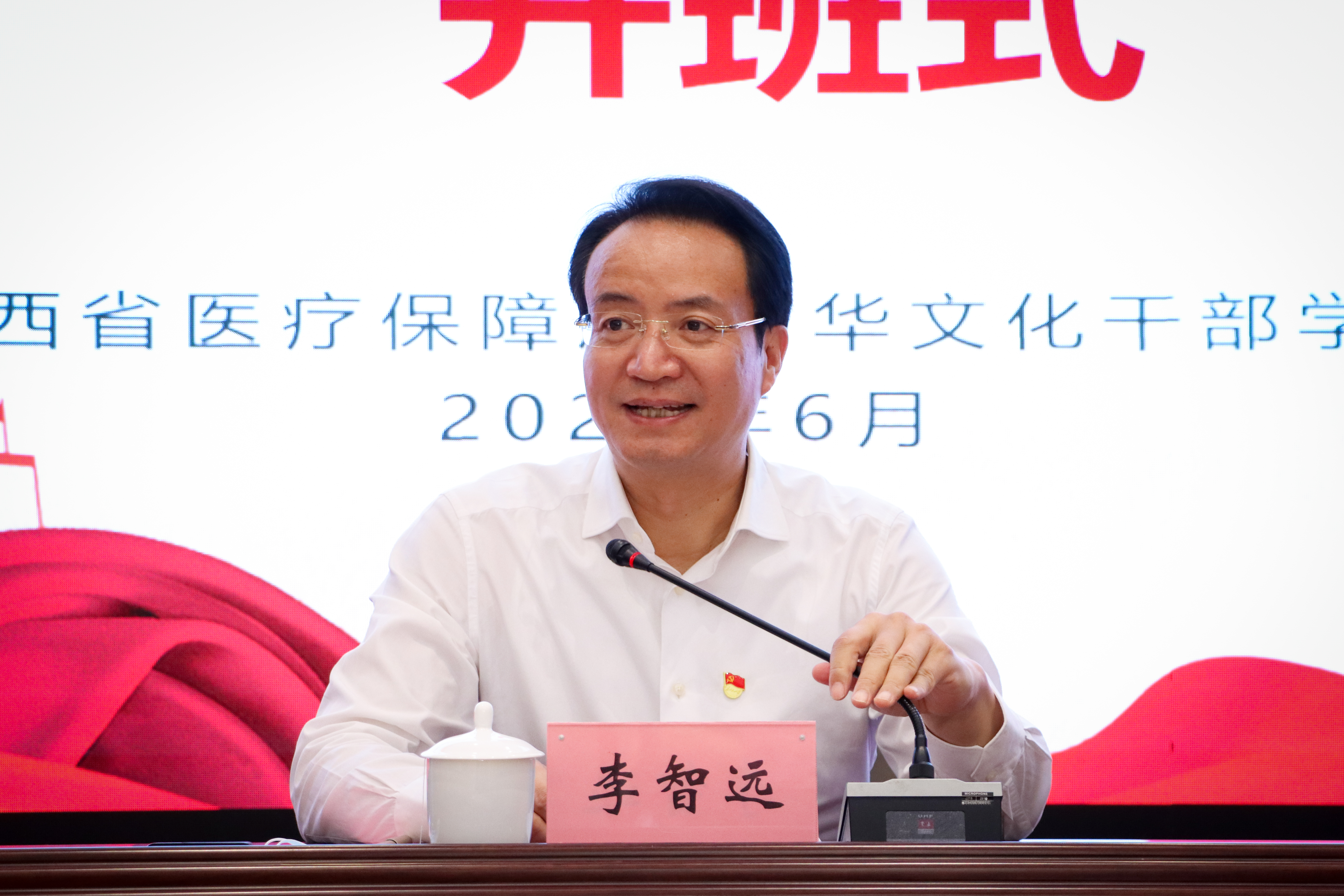 6月29日,由陕西省医疗保障局主办、中华文化干部学院承办的陕西省医疗保障局学习贯彻党的十九届六中全会精神专题培训班开班。陕西省医疗保障局党组书记、局长李智远,陕西省医疗保障局党组成员、副局长王睿民、温江城,二级巡视员季强、魏俊琦,beat365官网党委书记王亚杰出席开班仪式。开班仪式由陕西省医疗保障局党组成员、副局长雷耀堂主持。