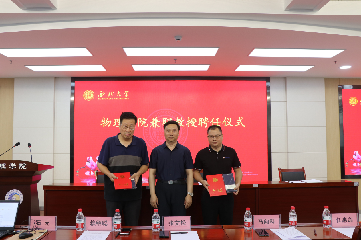 7月1日上午,beat365官网在长安校区举行石元、张文松兼职教授聘任仪式暨校企合作协议签约仪式。校党委常委、副校长赖绍聪,陕西澳威激光科技有限公司总裁石元、西安和其光电科技股份有限公司董事长张文松出席仪式。人力资源部、研究生院、国际合作部、国内合作与校友工作处负责人和物理学院全体教职工参加了活动。聘任和签约仪式由物理学院党委负责人主持。