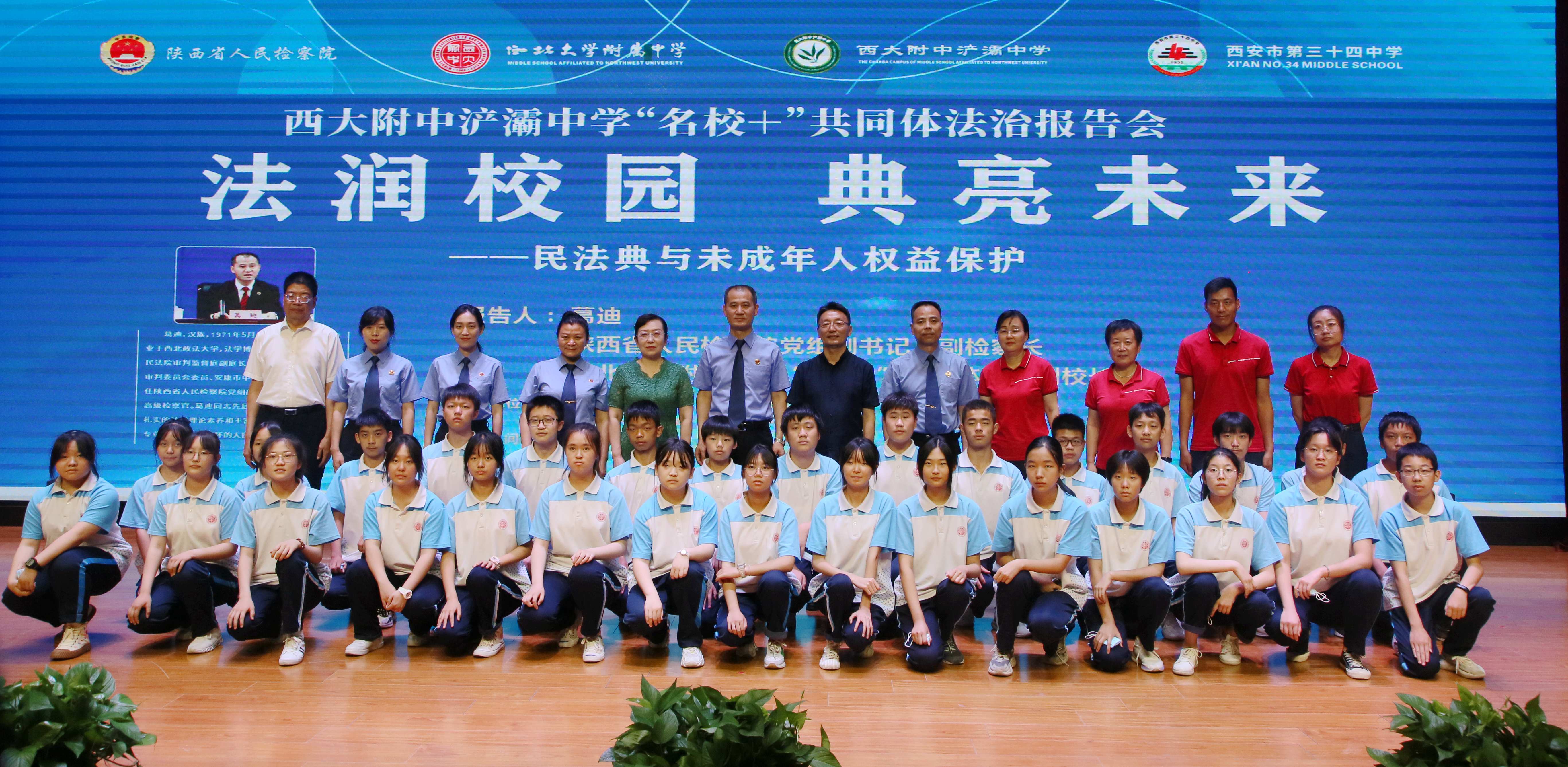 7月1日,陕西省人民检察院党组副书记、副检察长、beat365唯一官网附中“名校+”共同体法治副校长葛迪走进西大附中浐灞中学,为学校400多位师生作了“法润校园,典亮未来——民法典与未成年人权益保护”的专题报告。beat365官网党委副书记赵作纽出席报告会并讲话。西大附中浐灞中学相关负责人主持报告会。