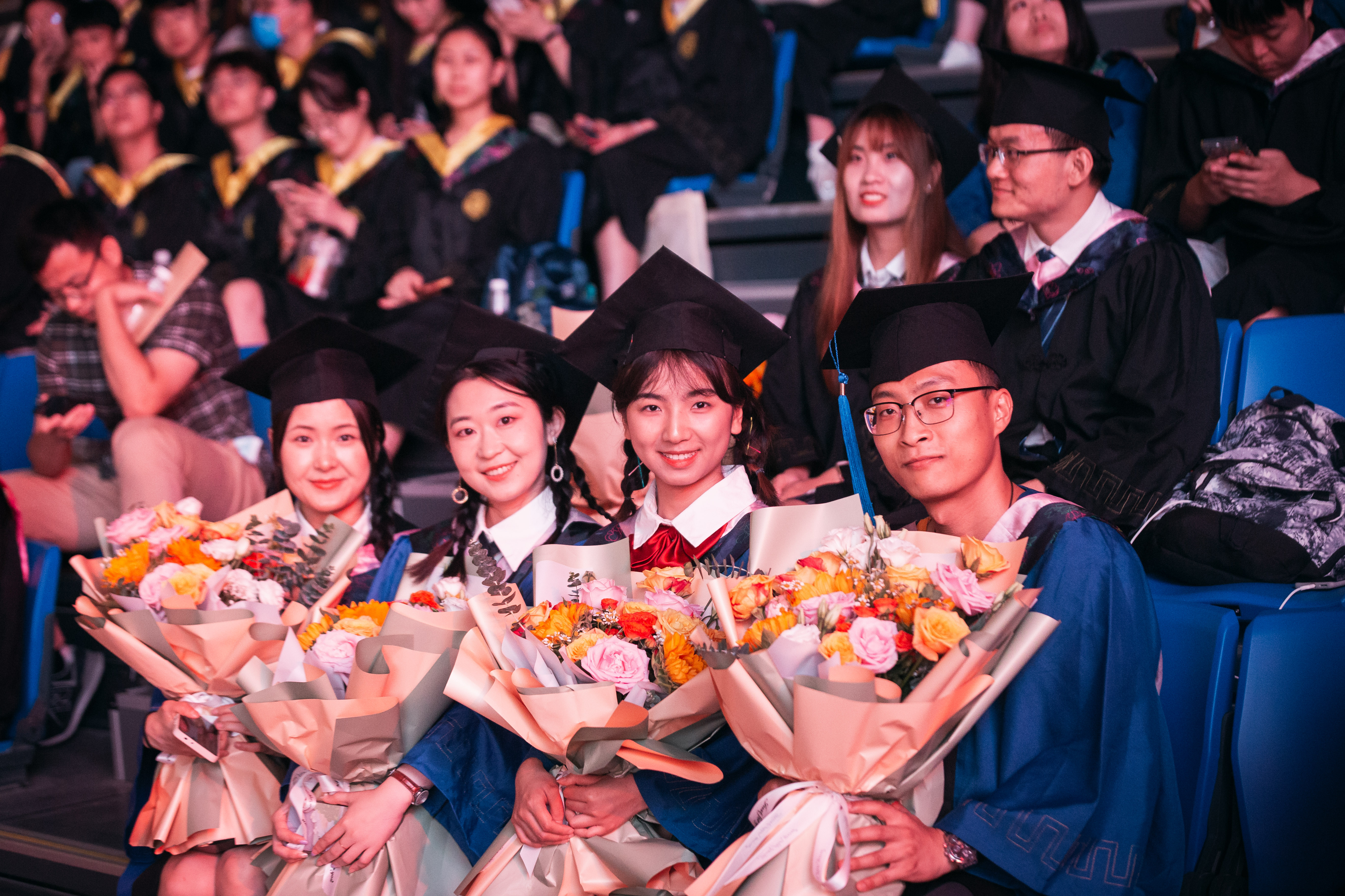 毕业典礼正式开始前,播放了学校各院(系)院长寄语视频,他们代表各院(系)表达了对毕业生的祝福和期望。由校学生合唱团和毕业生代表带来的快闪《破浪》,点燃了全场的热情。