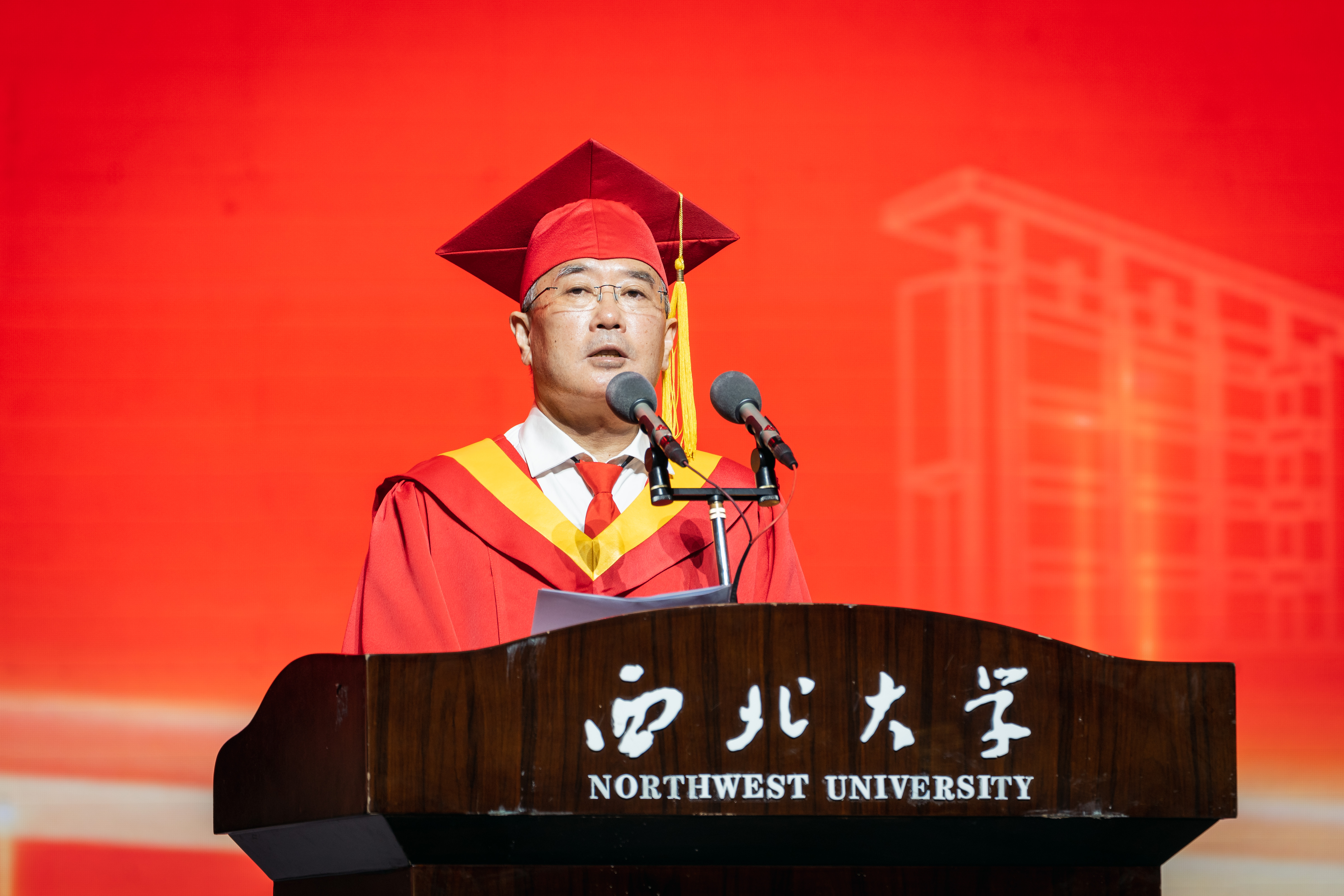公共管理学院(应急管理学院)院长、博士生导师雷晓康教授作为教师代表进行发言,期望各位毕业生能够成为孤勇者、奋斗者、清醒者和大爱者。陕西鼓风机(集团)有限公司党委书记、董事长、优秀校友代表李宏安发言,他深情回顾了在西大的学习生活,并在母校120周年华诞之际,祝愿母校积历史之厚蕴,更展宏图,再谱华章!