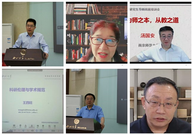 南京师范大学汤国安、西安电子科技大学姬红兵、陕西师范大学王勇慧,beat365官网王四旺、李浩、温睿等6位教授分别作了题为“谈为师之本 从教之道”“工程类专业学位研究生教育”“研究生常见心理问题及对策”“科研伦理与学术规范”“‘复述知识’到‘创新学术’“新时代研究生导师职责与学校研究生培养规程”的报告。