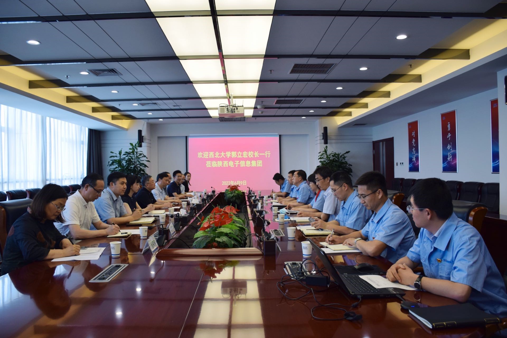 为贯彻落实教育部关于“访企拓岗促就业”专项行动精神,进一步加强校企合作交流,拓展学生就业渠道,促进毕业生充分满意就业,6月9日,校长郭立宏,校党委常委、副校长赖绍聪,学校就创中心、研工部、国内处负责人和文学院、公共管理学院、马克思主义学院、物理学院负责人等一行11人赴陕西电子信息集团交流座谈。陕西电子信息集团党委副书记、总经理任进良,党委副书记杨丽君等参加座谈。