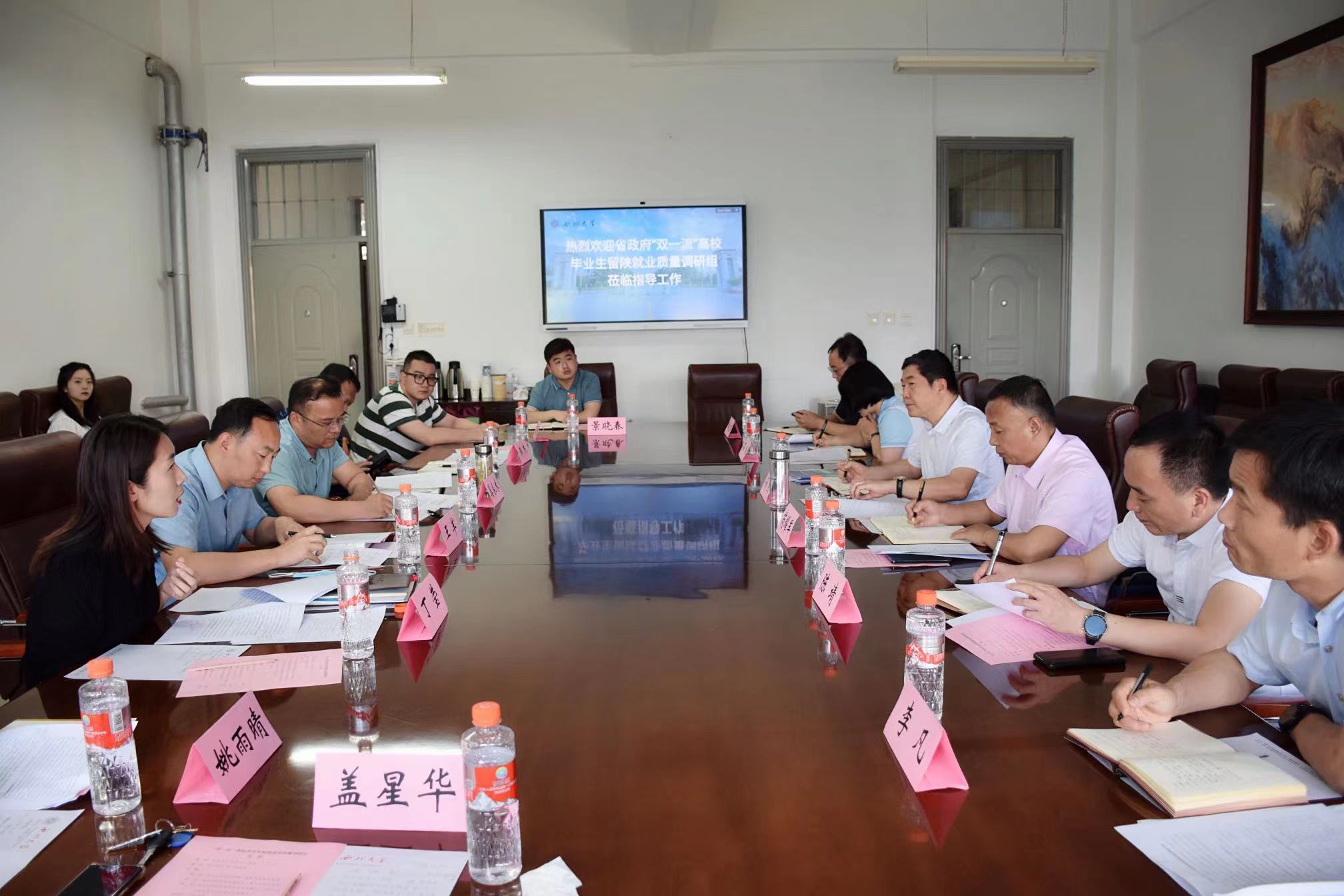 5月30日,省政府研究室副主任孙杰一行来beat365官网开展“双一流”高校毕业生留陕就业质量情况调研,校党委常委、副校长奚家米参加座谈会并致辞。公共管理学院、哲学学院相关负责人,就创中心干部及2022届毕业生代表参加会议。