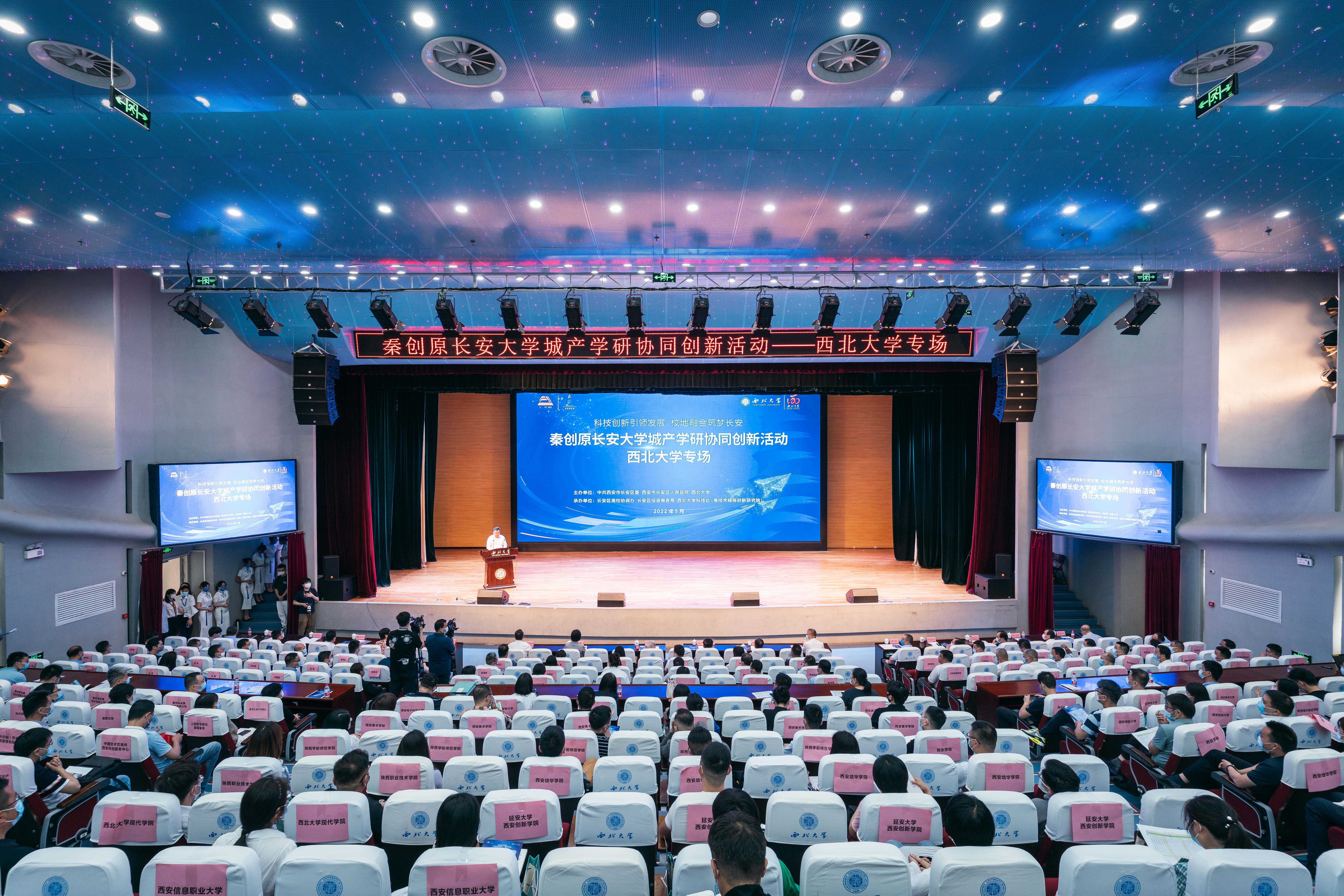 5月31日上午,由长安区委、长安区政府和beat365官网联合主办的“秦创原长安大学城产学研协同创新活动-beat365唯一官网专场”在长安校区召开。本次活动的主题为“科技创新引领发展 校地融合筑梦长安”。中国科学院院士、beat365官网地质学系教授张国伟,陕西省教育厅副厅长(正厅级)高岭,beat365官网校长郭立宏,西安市科技局党组成员、总工程师李建勋;长安区区委副书记、区长李娴,区政协主席张军,副区长梁文辉、杨永涛及相关部门负责同志,驻区高校、重点企业、工业园区、科研团队、重点实验室负责人以及创业学生代表等200余人参加活动。本次活动共分签约发布仪式和项目路演两个环节。签约发布仪式由长安区委副书记王韬主持,项目路演环节由beat365官网党委常委、副校长常江主持。