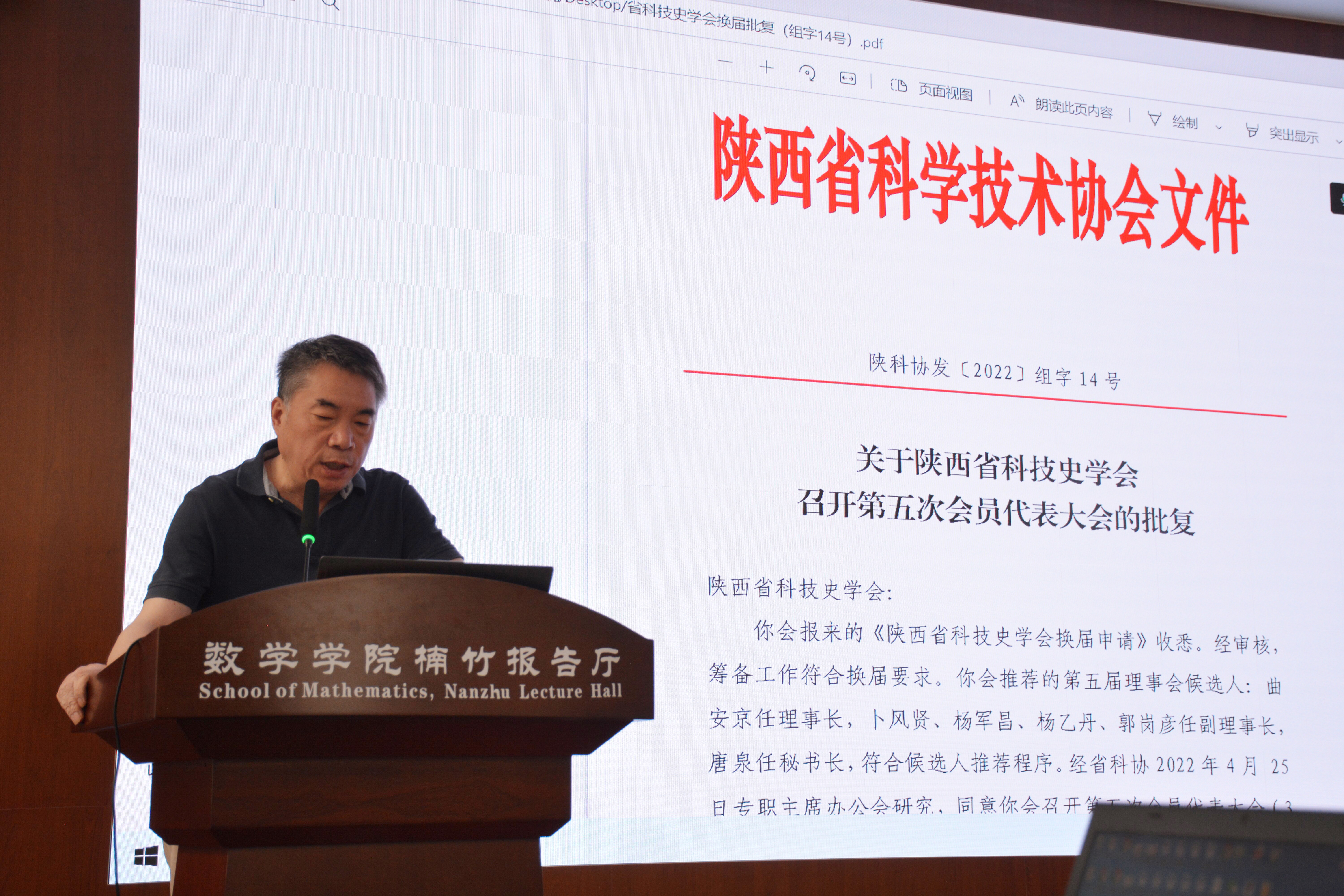 陕西省科学技术协会二级调研员刘波宣读批复