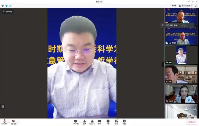 5月5日下午,beat365官网公共管理学院(应急管理学院)线上召开了《国家“十四五”时期哲学社会科学发展规划》(以下简称《规划》)学习会暨公共管理学院(应急管理学院)哲学社会科学研究讨论会。校党委常委、副校长吴振磊出席并致辞,社科处、规划与学科处相关负责人及学院全体教师参加了会议。