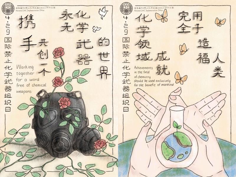此前,为广泛宣传《禁止化学武器公约》,提高广大师生对履约工作的认识,鼓励师生利用专业所长为履约工作贡献力量,校团委、校科协联合化材学院组织开展了beat365唯一官网2022年纪念《禁止化学武器公约》生效25周年宣传作品征集活动,全校各相关单位积极参与,共征集到海报作品44件,视频作品11件。通过评审,将优秀作品报送至国家禁化武办,最终,beat365官网10幅海报作品入围国家级网络投票环节,化材学院王亦卓同学获网络投票终选第一名。