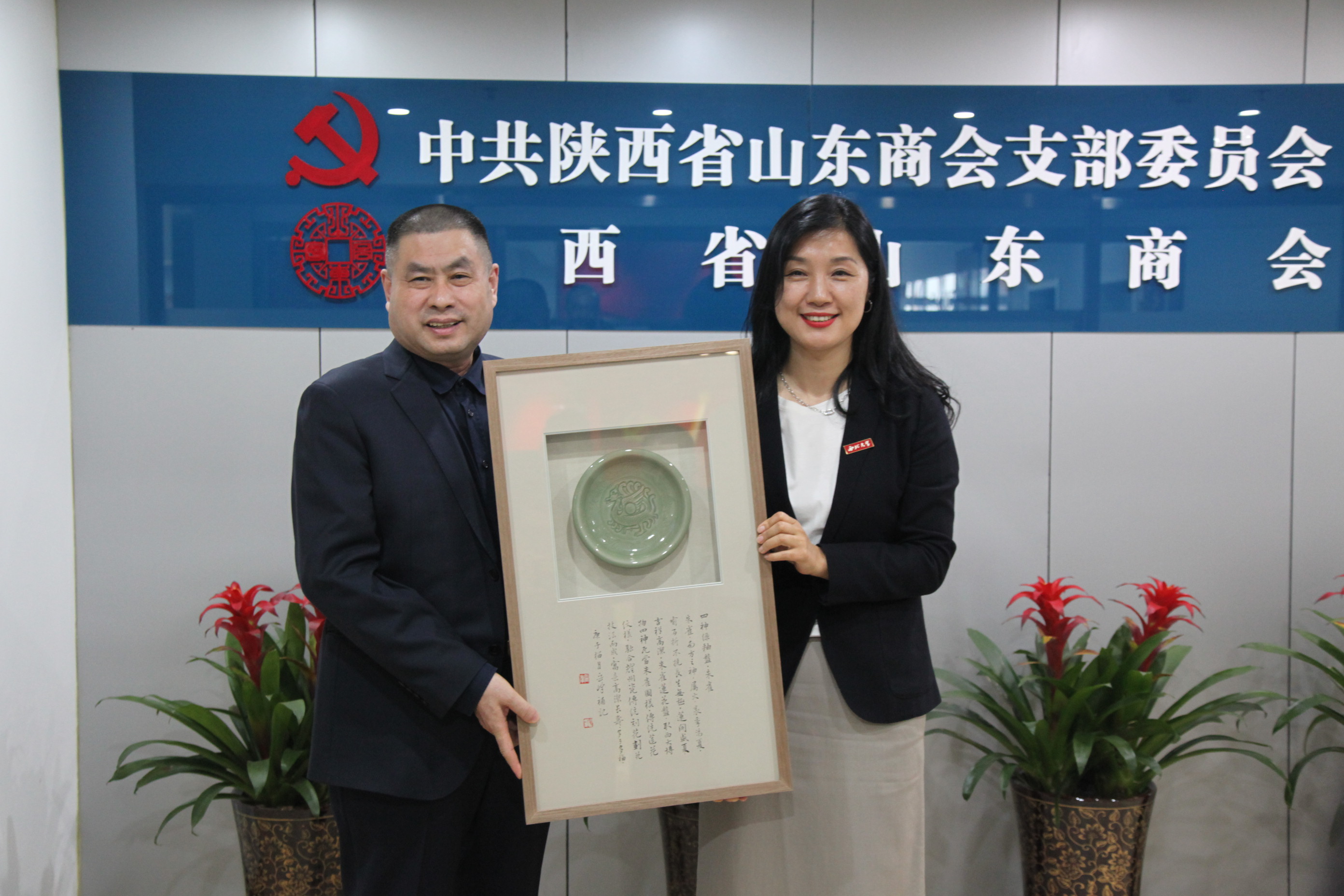 校党委副书记张清与陕西省山东商会党支部书记、会长孙忠宝互赠纪念品