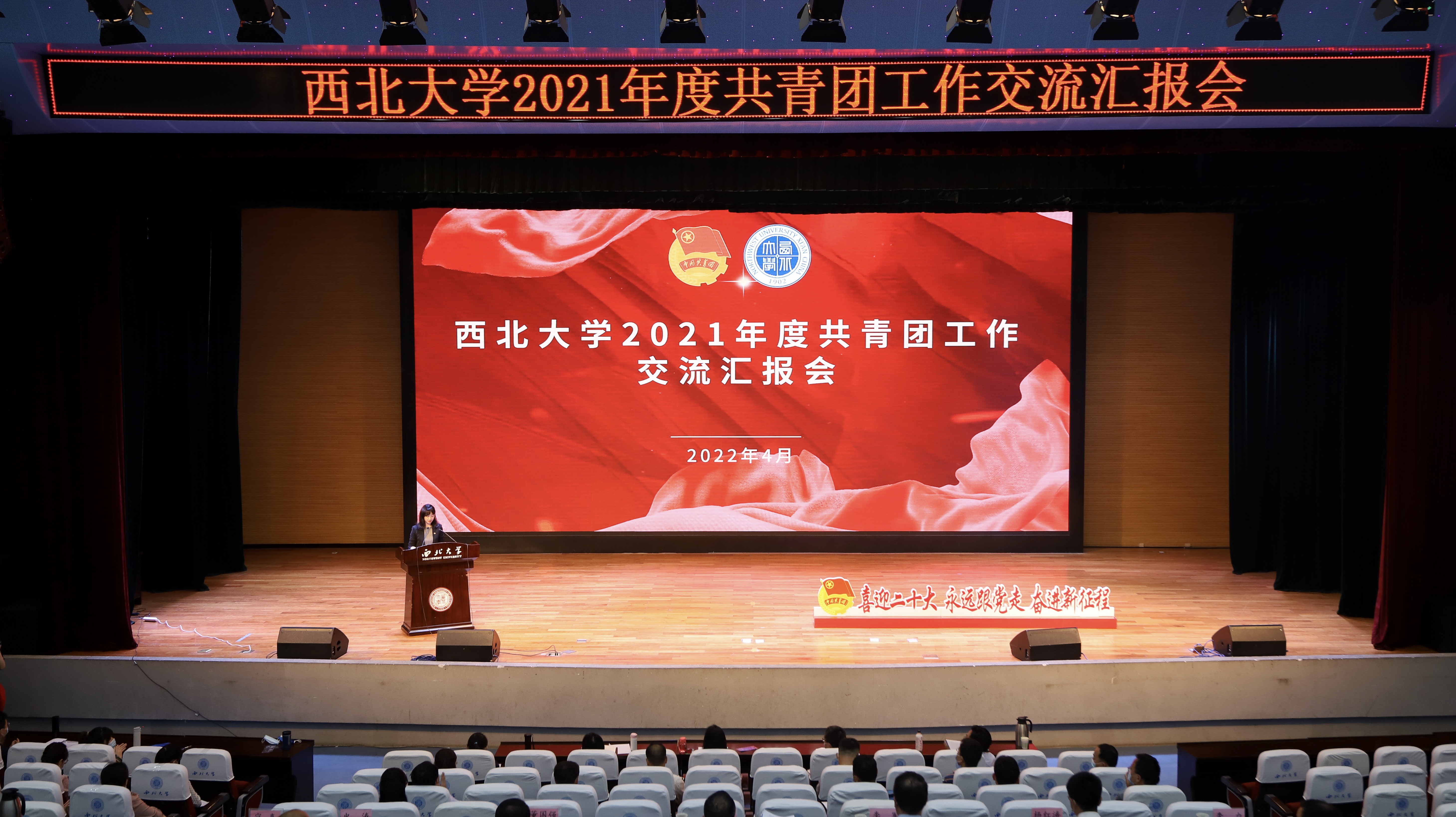 4月11日下午,beat365官网2021年度共青团工作交流汇报会在长安校区举行。校党委副书记吕建荣,组织部、宣传部、学工部、研工部、教务处等单位相关负责人听取汇报并担任评委,各院系学生工作负责人、各院系学生团员代表组成的学生评委团分别于主会场、分会场观看并打分。“团聚西大”微信视频号进行同步直播,最高观看人数达到500余人。校团委负责人主持会议。