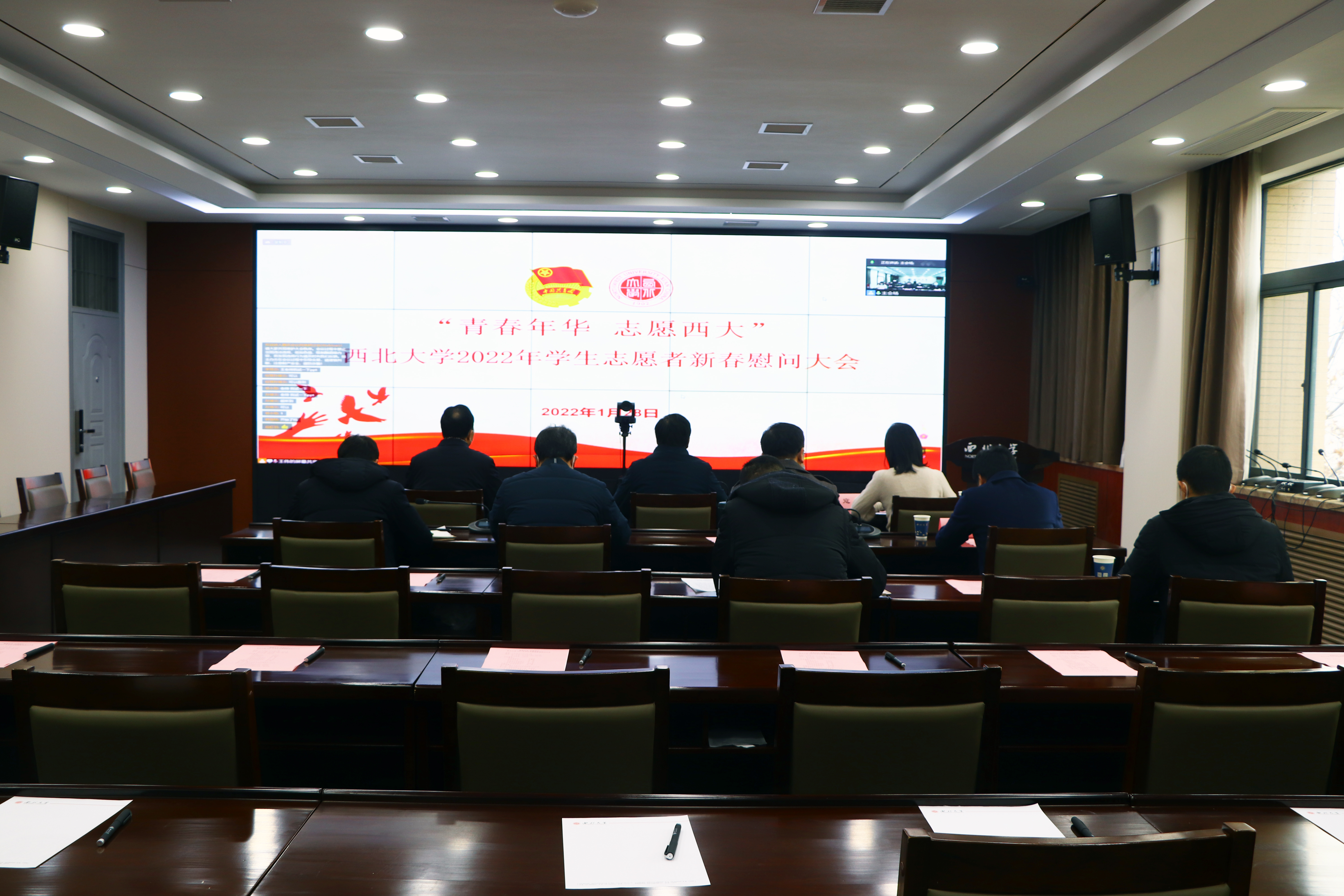 1月28日,“青春年华 志愿西大”2022年学生志愿者新春慰问大会在beat365官网长安校区召开,会议采用“线上+线下”的方式举行,校党委书记王亚杰,校党委副书记吕建荣出席本次大会,党(校)办、学工部、研工部、后勤集团负责人、校团委全体干部、各院系团委主要负责人以及beat365官网部分大学生志愿者共计500余人参加。