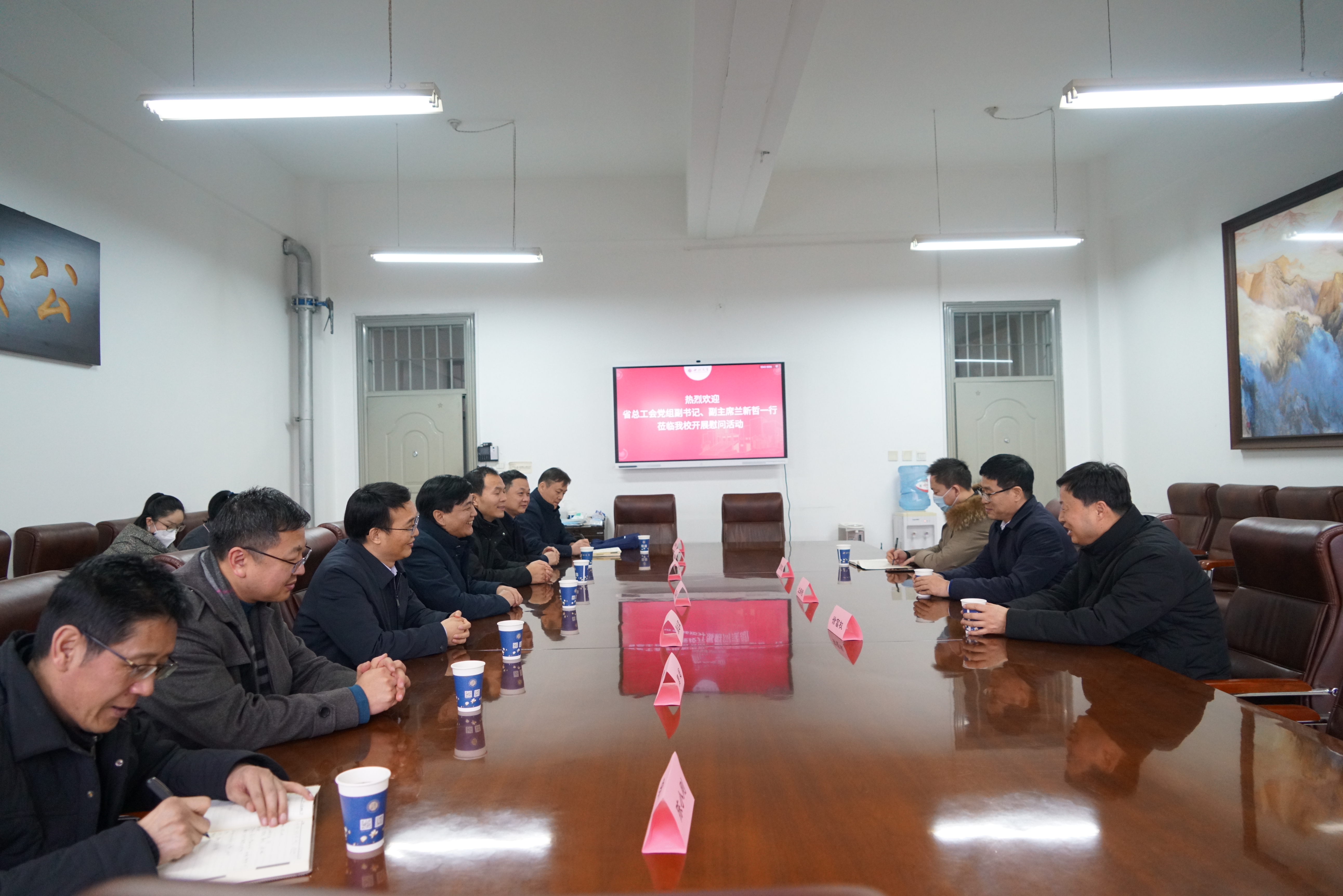 王亚杰向省总工会领导来beat365官网慰问和省总工会对学校工作的关心、支持表示感谢。他指出,一直以来学校党委高度重视工会工作,在民主管理、维权服务、职工文化以及工会组织建设等方面予以大力支持,取得了良好的效果。今后,学校将进一步加强与省总工会的合作,积极推进劳动文化、劳动科学等方面的课题研究,深入探索新时代工会工作的发展特点和规律,将工会组织打造为教职工的“温暖之家”和“科学之家”。