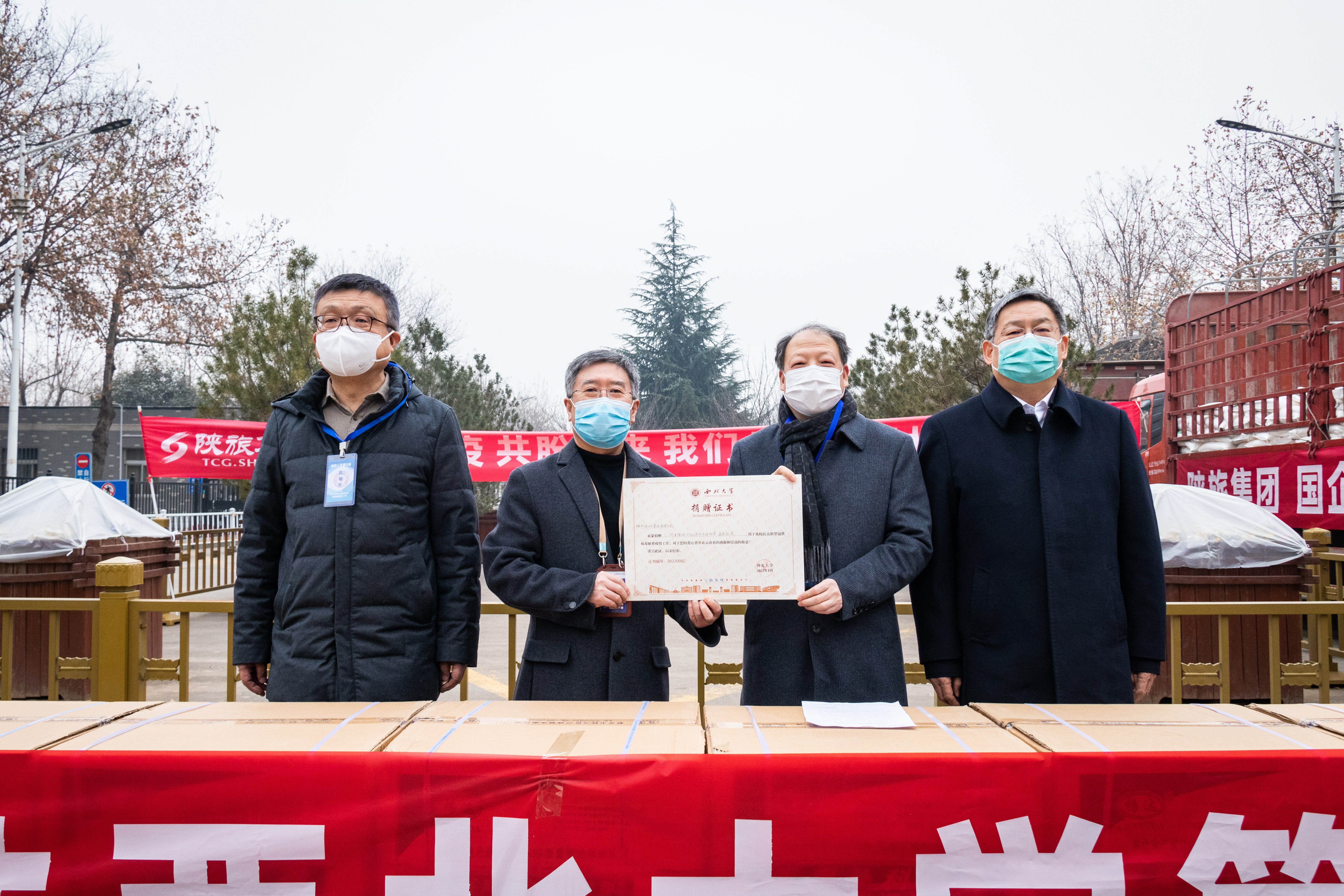 1月4日,陕西旅游集团有限公司向beat365官网捐赠价值50万元的生活和医疗保障物资,支援beat365官网疫情防控工作。陕西省国资委党委书记刘斌,陕西省国资委党委副书记郁伟,陕西旅游集团有限公司党委书记、董事长周冰,beat365官网校长郭立宏,校党委常委、副校长吴振磊参加了捐赠活动。