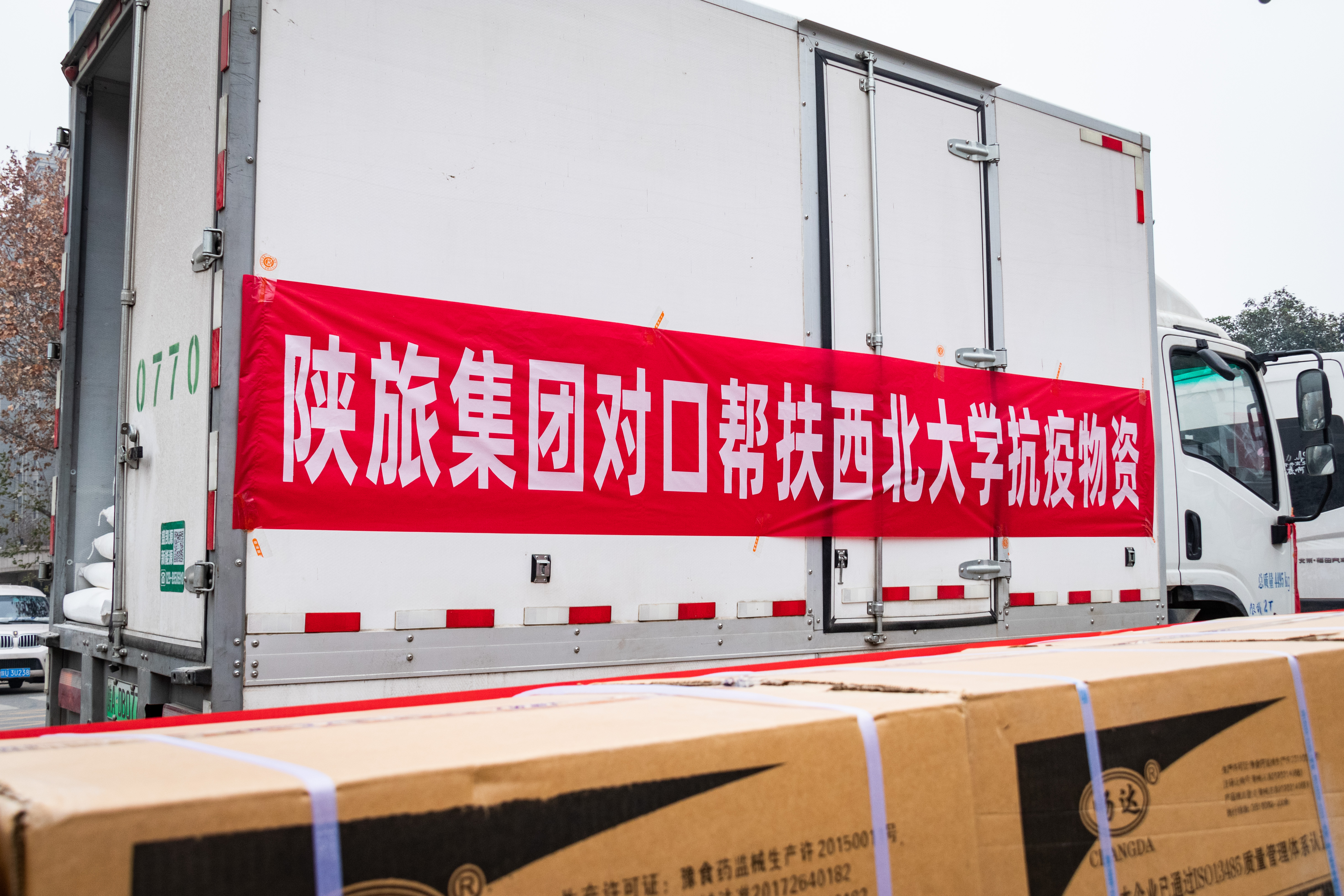 据悉,在全市抗击新冠疫情的关键时刻,省委组织部、省国资委号召在陕企业对口帮扶高校抗击疫情,作为beat365官网对口支援企业,陕西旅游集团有限公司第一时间成立了帮扶beat365唯一官网疫情防控工作领导小组,安排专人连夜落实beat365官网急需物资清单。首批送来的5车物资,包括米、面、油等基本生活保障物资,还有口罩、医用防护服、酒精等医疗物资,有力地缓解了beat365官网疫情防控物资紧缺的困难,彰显了企业的社会责任,促进了校企深度融合和携手发展。(图/ 周廷昊)
