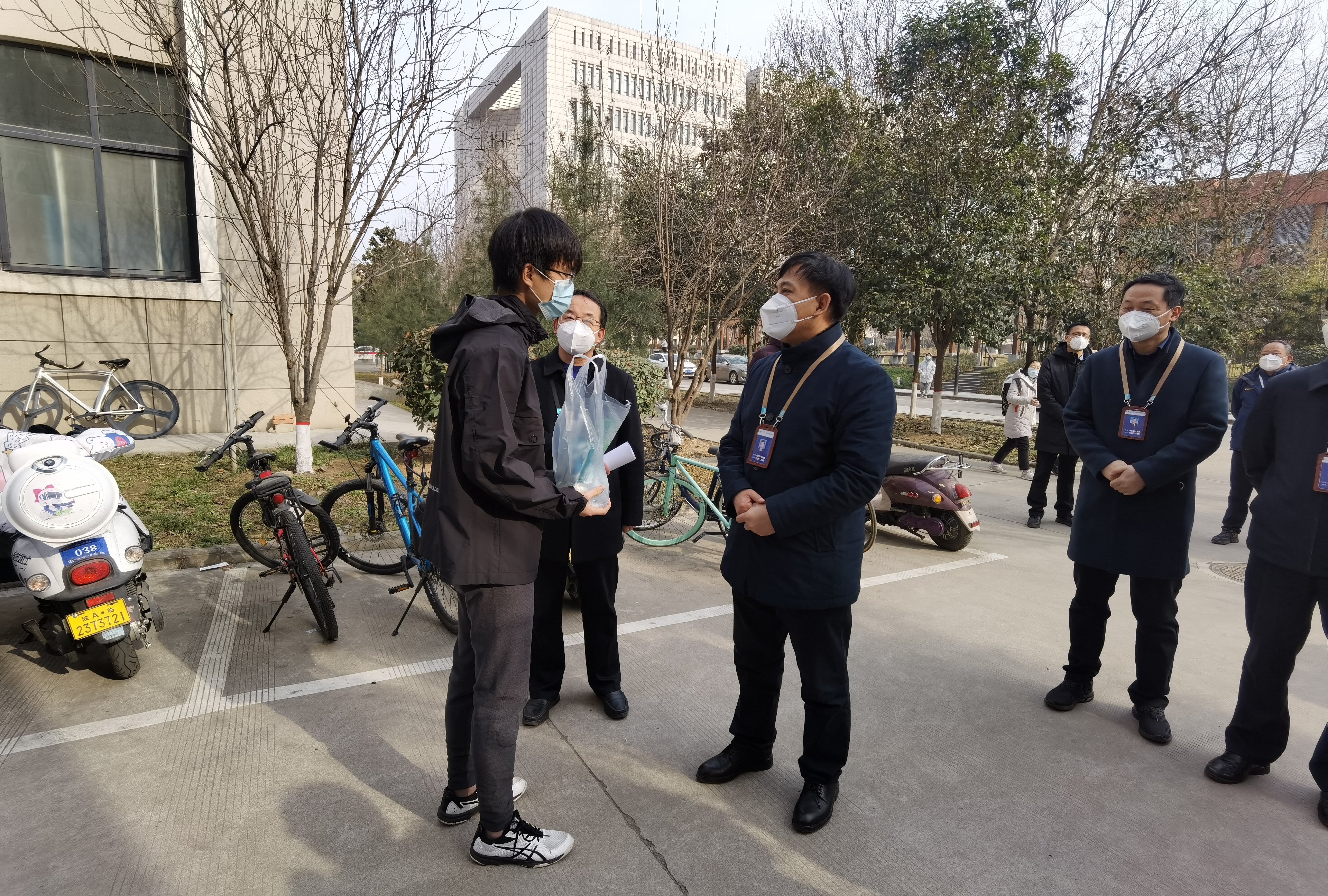 会后,王亚杰带队视察了长安校区学生食堂、宿舍、超市、核酸检测现场等地,重点了解学生食堂排队带餐和超市货物供应情况,为经济困难学生发放防疫物资,慰问在核酸检测现场维持秩序的学生志愿者及家属区党员志愿者服务队,并要求相关部门全力做好师生基本生活保障。