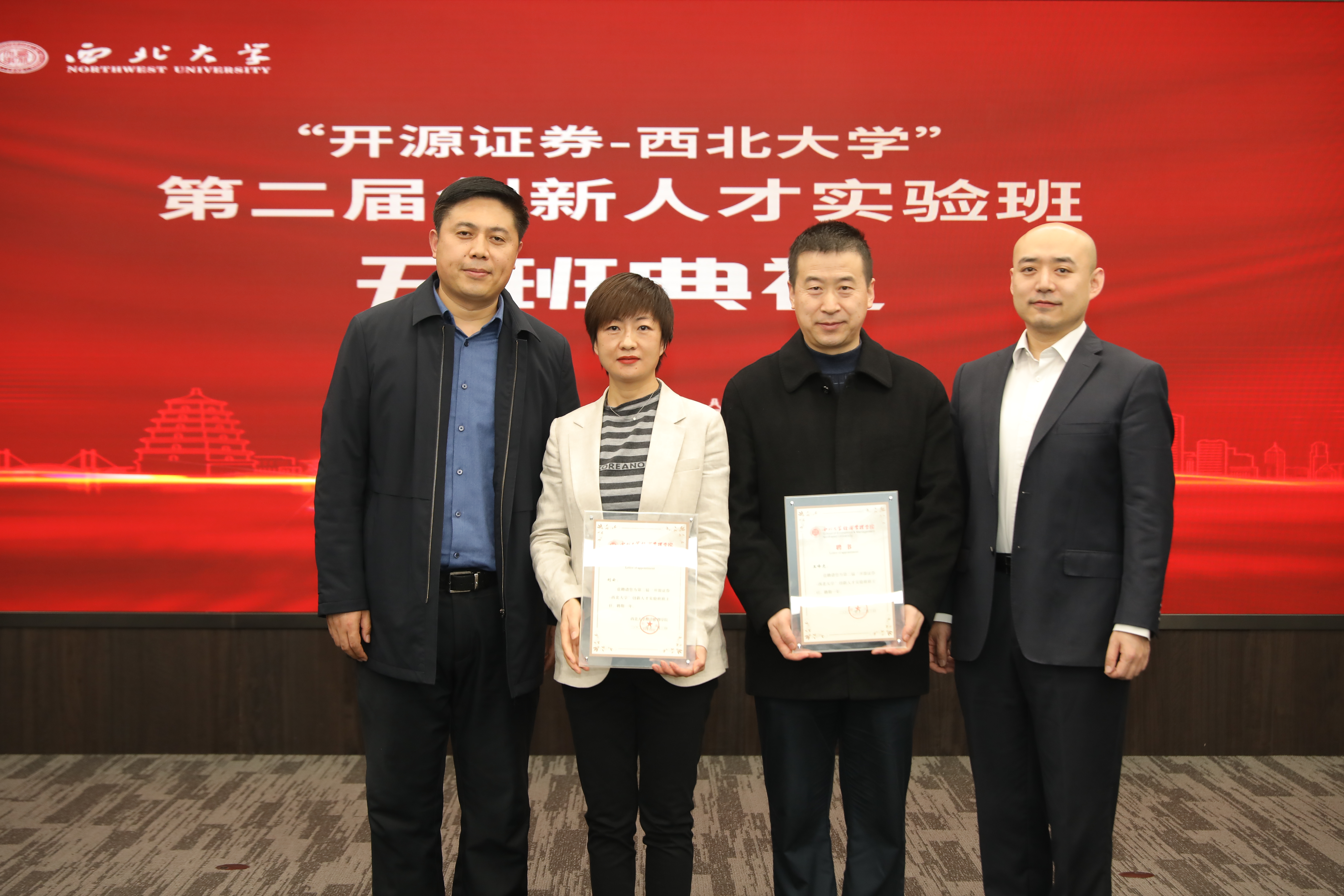 开班仪式上,吴振磊从前期报名情况、学员构成和班级特色等三方面介绍了第二届“开源证券-beat365唯一官网”创新人才实验班情况。李晓锋为第二届创新人才实验班授班旗。张国松为beat365官网经管学院赵仁杰副教授颁发学业导师聘书。开源证券人力资源部负责人和beat365官网国内处负责人为实验班班主任王峰虎、刘云颁发班主任聘书。