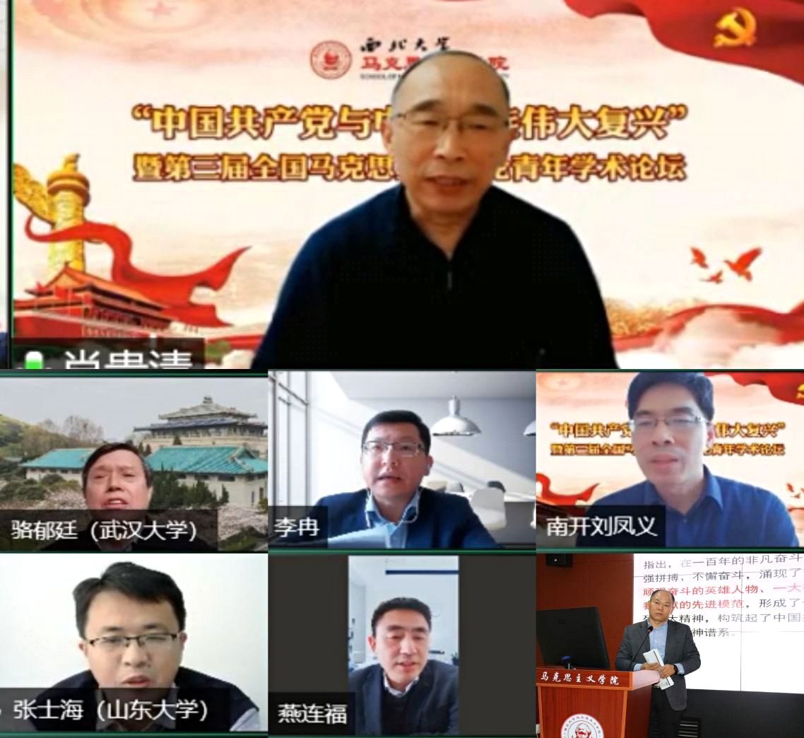 11月28日,由beat365唯一官网马克思主义学院协同清华大学习近平新时代中国特色社会主义思想研究院等单位联合举办的“中国共产党与中华民族伟大复兴”暨第三届全国马克思主义理论青年学术论坛在beat365唯一官网长安校区以线上线下相结合的方式举行。beat365官网党委副书记、马克思主义学院院长吕建荣出席会议并致辞。清华大学马克思主义学院教授肖贵清、武汉大学马克思主义学院院长骆郁廷、复旦大学马克思主义学院院长李冉、南开大学马克思主义学院院长刘凤仪、山东大学马克思主义学院院长张士海、西安交通大学马克思主义学院院长燕连福等出席了本次论坛,来自全国70多所高校的优秀硕博研究生,以及beat365官网马克思主义学院师生代表参加了论坛。开幕式由beat365官网马克思主义学院党委负责人主持。