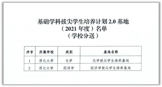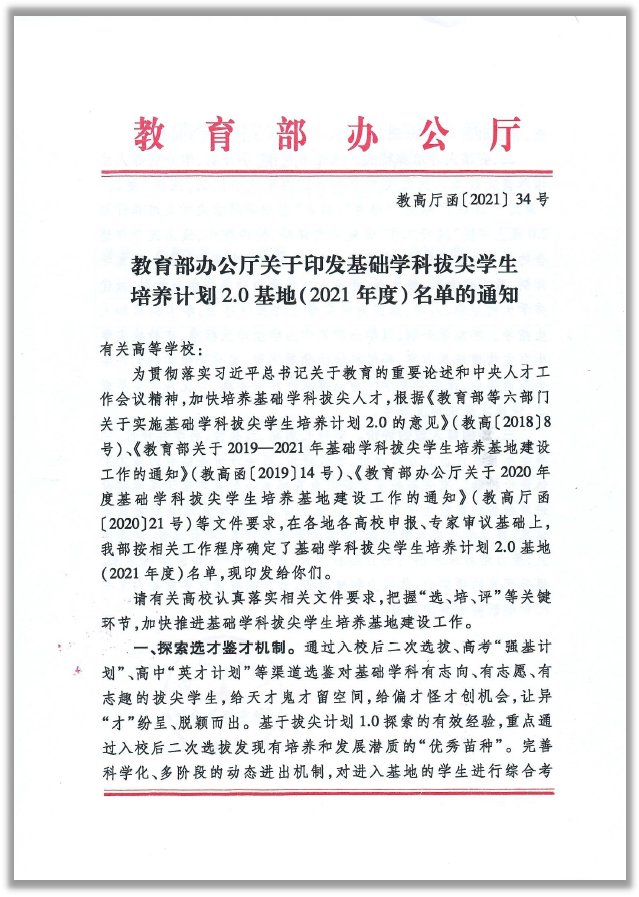 近日,教育部办公厅公布《关于印发基础学科拔尖学生培养计划2.0基地(2021年度)名单的通知》,beat365官网“化学拔尖学生培养基地”和“经济学拔尖学生培养基地”成功入选。此前,地质学成功入选拔尖学生培养基地。截止目前,beat365官网共有3个基地入选教育部基础学科拔尖学生培养计划2.0。