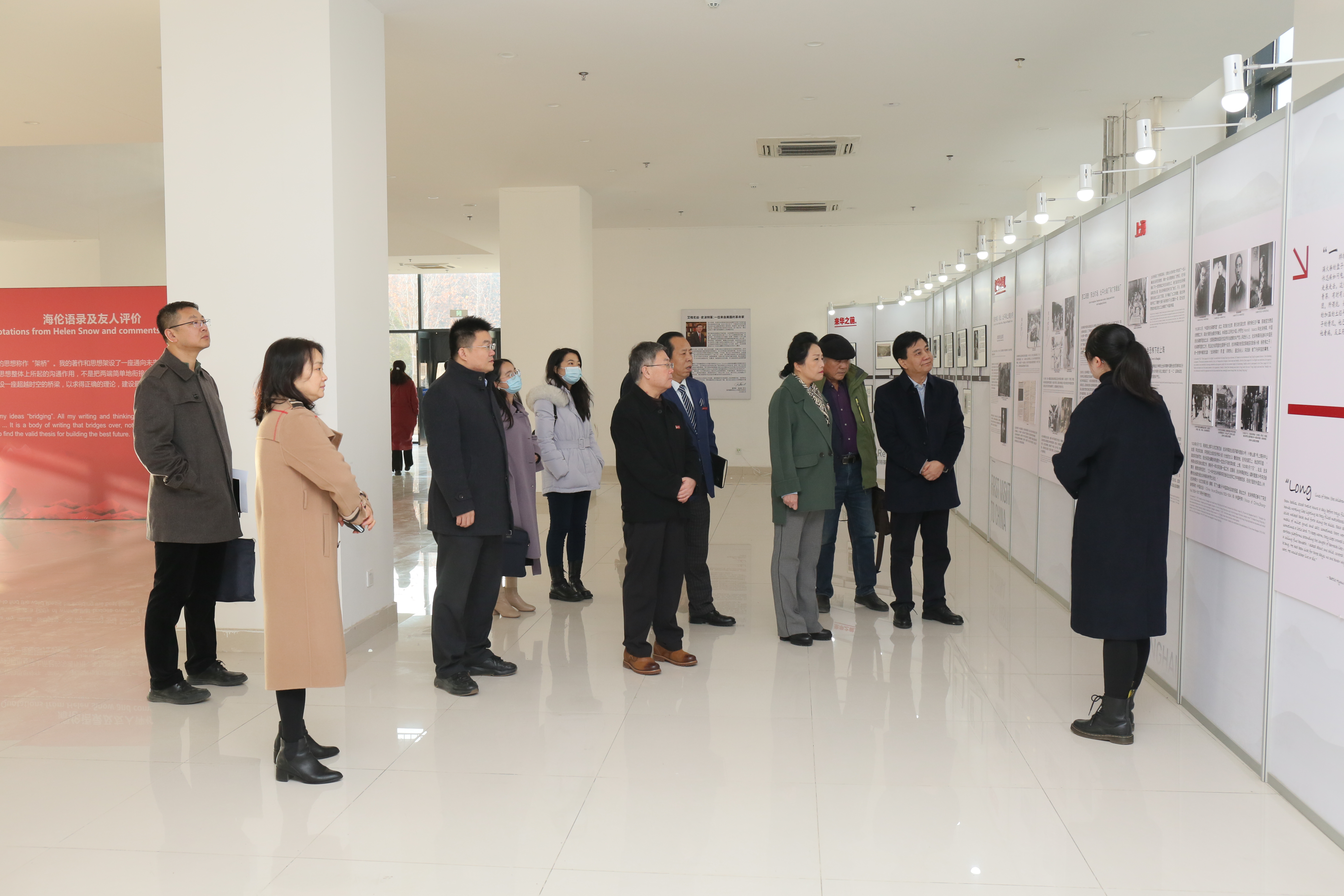 会前,校党委书记王亚杰,校长郭立宏陪同调研组一行参观了斯诺研究中心和在beat365官网长安校区布展的“革命人生——艾格尼丝·史沫特莱专题展”“海伦·福斯特·斯诺图片展”。