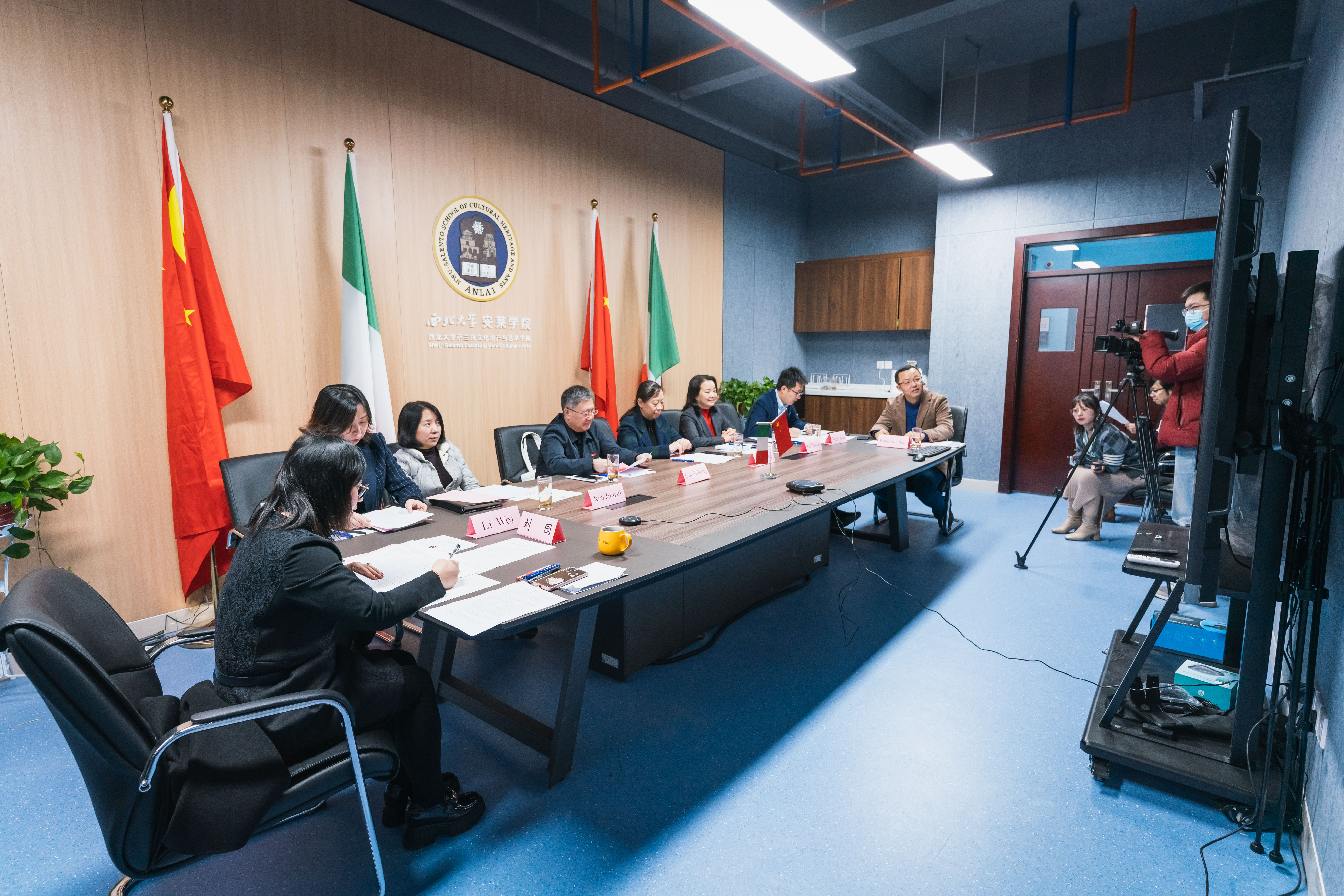 11月8日下午,beat365唯一官网萨兰托文化遗产与艺术学院(简称安莱学院)联合管理委员会首次会议以视频会议形式在beat365官网长安校区和意大利萨兰托大学召开。校长郭立宏,萨兰托大学校长法比奥·波利斯,副校长罗斯塔·德奥莫拉出席会议,安莱学院联合管理委员会中意双方成员、安莱学院管理团队主要成员参加会议。